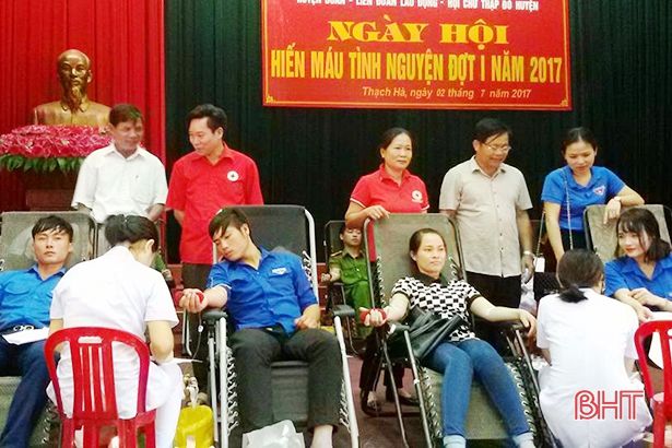 Từ tấm gương của Tuyên, nhiều ĐVTN khác trên địa bàn xã cũng đã hăng hái tham gia phong trào (Ảnh: ĐVTN xã Thạch Thắng tham gia ngày hội hiến máu của huyện Thạch Hà)