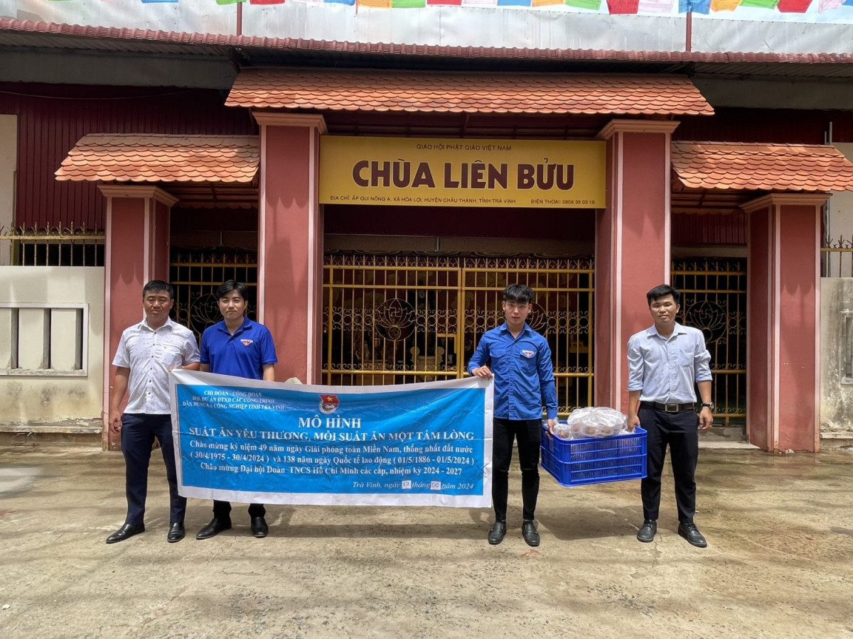 Ngày 17/5/2024, Chi đoàn Ban quản lý dự án ĐTXD các công trình Dân dụng và Công nghiệp tỉnh Trà Vinh phối hợp với Công đoàn đã đến thăm và trao tặng những suất ăn yêu thương đến các cụ có hoàn cảnh neo đơn, đang sinh sống tại Viện dưỡng lão Chùa Liên Bửu.