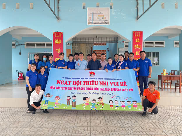 Sáng ngày 14/7/2024, Chi đoàn cơ quan Đảng, Mặt trận Tổ quốc và các tổ chức chính trị – xã hội tỉnh tổ chức Ngày hội “Thiếu nhi vui hè” gắn với tuyên truyền về chủ quyền biển đảo, biên giới cho hơn 100 em thiếu nhi tại trường Tiểu học Vinh Kim A, xã Vinh Kim, huyện Cầu Ngang. Tham dự ngày hội có đồng chí Nguyễn Thị Cẩm Hương – Phó Bí thư Chi bộ Cơ quan Tỉnh đoàn, Phó Bí thư Tỉnh đoàn; đồng chí Hồ Hữu Nghĩa, Trợ lý Công tác quần chúng, Phòng Chính trị, Bộ Chỉ huy Quân sự tỉnh; đồng chí Thạch Thị Diễm Kiều – Bí thư Chi đoàn cơ quan Đảng, Mặt trận Tổ quốc và các tổ chức chính trị – xã hội tỉnh; đồng chí Nguyễn Khắc Vinh – Bí thư Xã đoàn Vinh Kim; Ban Giám hiệu, thầy cô giáo trường Tiểu học Vinh Kim A và các bạn đoàn viên thanh niên cùng tham dự.