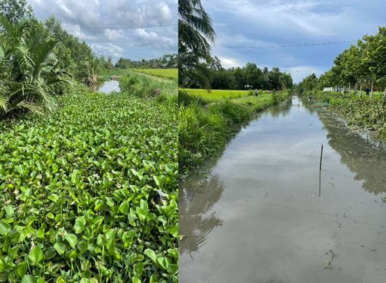 Tại đây, các bạn đoàn viên đã phối hợp với người dân ra quân thực hiện vớt lục bình khai thông dòng chảy, tạo thuận lợi cho giao thông đường thủy, sản xuất nông nghiệp, nuôi trồng thuỷ sản tại 03 tuyến kênh: Ấp Giồng Tranh, Ấp Lê Văn Quới và tuyến kênh cập hương lộ 13 với chiều dài 3km. Ngoài ra, các bạn đoàn viên còn hỗ trợ người dân sửa chửa tuyến đường đanl với chiều 2km tại ấp Ngô Văn Kiệt với tổng kinh phí 7.000.000 đồng.