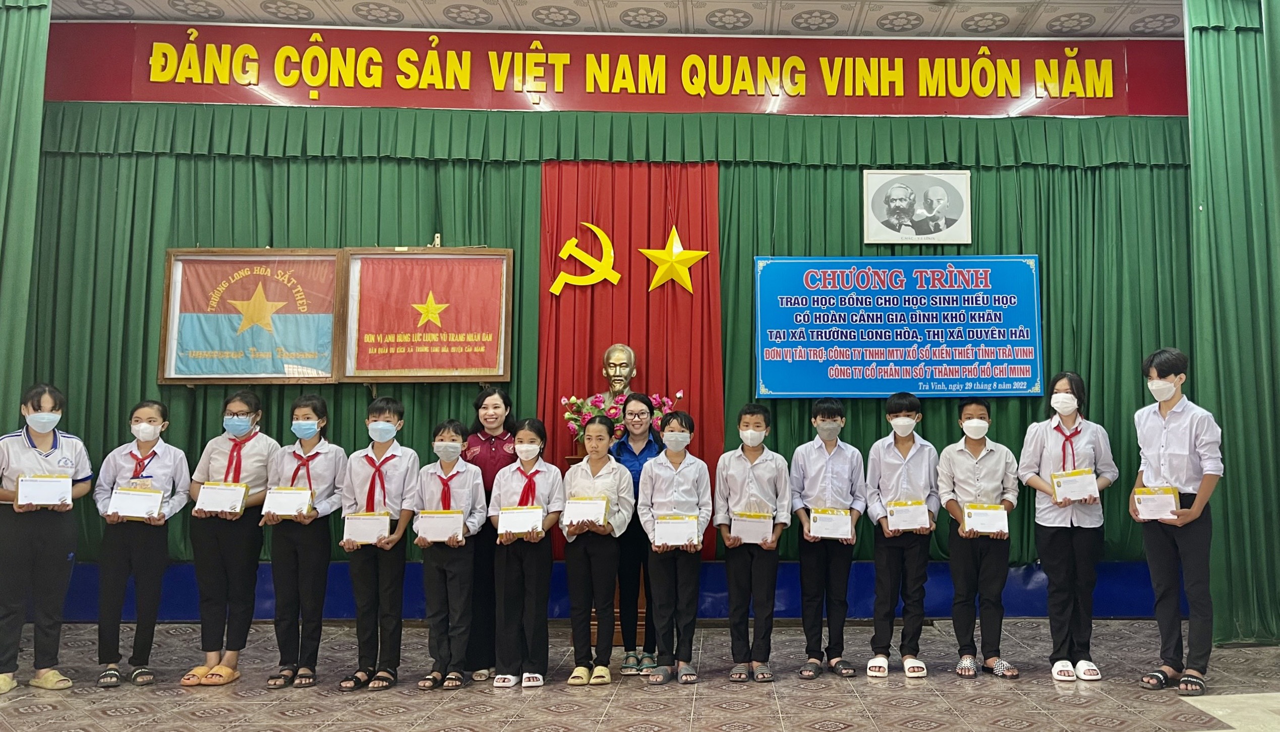 Ngày 29/8/2022, Chi đoàn Công ty TNHH MTV Xổ số kiến thiết Trà Vinh phối hợp Chi đoàn Công ty CP In số 7 tổ chức Chương trình trao học bổng kết hợp Hành trình về địa chỉ đỏ tại xã Trường Long Hòa, thị xã Duyên Hải. Tham gia Hành trình còn có Đại diện Đảng ủy, Lãnh đạo, Công đoàn của 02 Công ty.