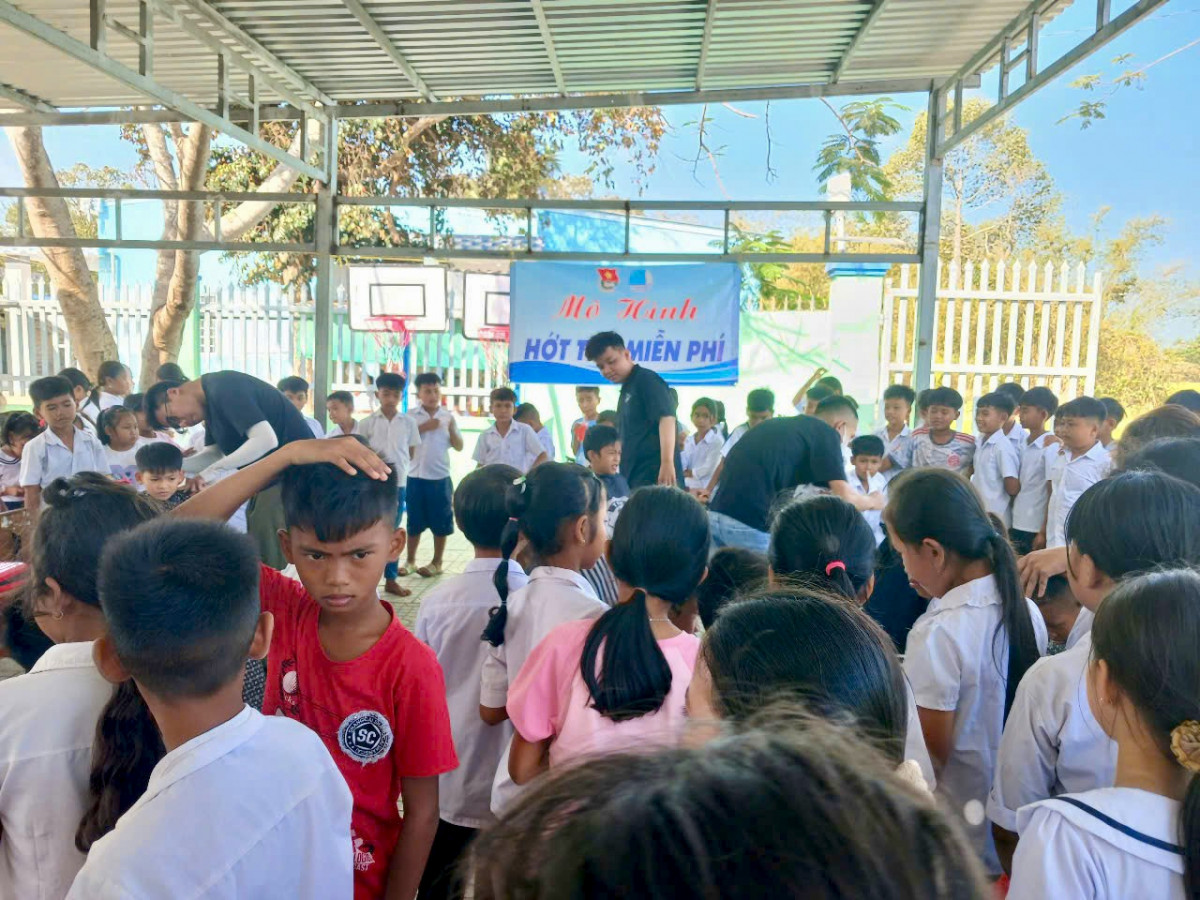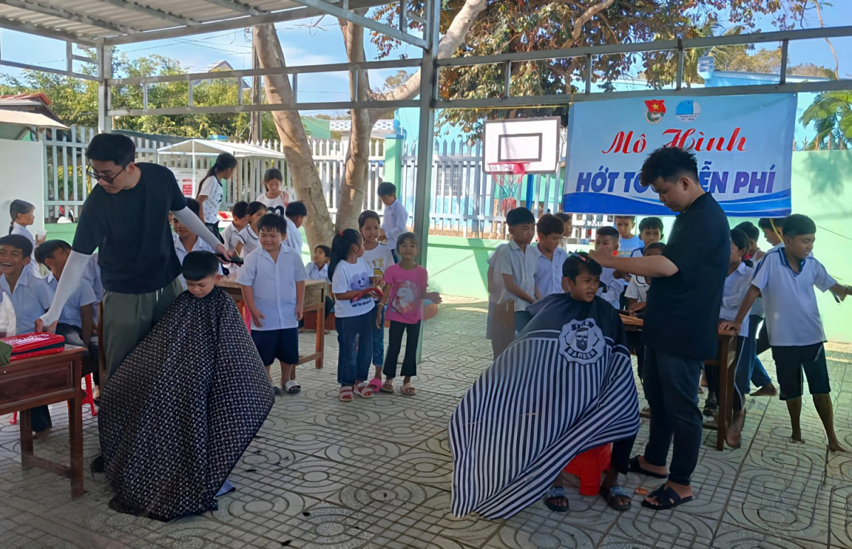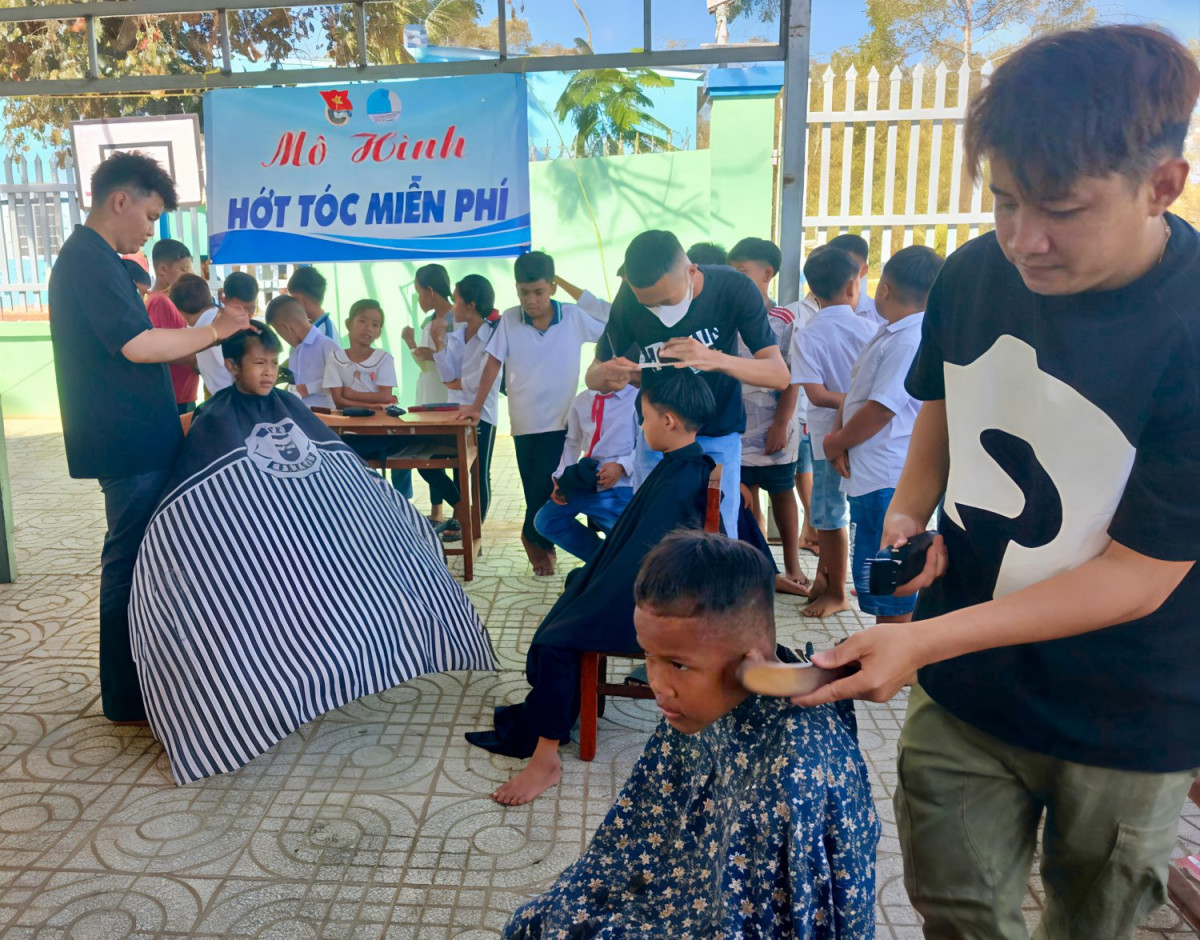 Tại đây, các em học sinh đã được các thợ cắt tóc chuyên nghiệp đến từ Salon tóc Huy Barbershop tận tình chăm sóc, tạo kiểu tóc gọn gàng, phù hợp. Nhiều em tỏ ra thích thú khi lần đầu tiên được cắt tóc bởi những người thợ lành nghề, mang lại diện mạo mới đầy tươi tắn và tự tin. Đối với các em nhỏ, việc có một mái tóc chỉnh chu không chỉ giúp các em thoải mái hơn trong sinh hoạt mà còn tạo thêm động lực để các em đến trường. Dịp này, Chi đoàn Đài còn trao tặng 13 suất học bổng cho các em học sinh có hoàn cảnh đặc biệt khó khăn của trường, với tổng kinh phí thực hiện gần 8.000.000 đồng.