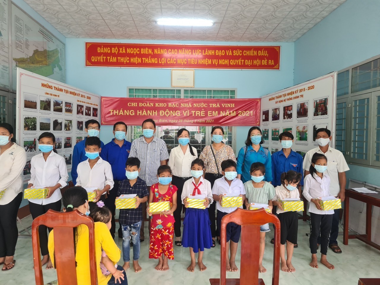 Hưởng ứng “Tháng hành động vì trẻ em”, ngày 28/5/2021 vừa qua được sự thống nhất của Đảng ủy, Ban Giám đốc, Chi đoàn Kho bạc Nhà nước (KBNN) Trà Vinh đã đến thăm và tặng quà cho các em học sinh nghèo, có hoàn cảnh khó khăn, học giỏi tại xã Ngọc Biên, huyện Trà Cú, tỉnh trà Vinh. Cụ thể, đoàn đã trao tặng tất cả 10 phần quà, mỗi phần gồm học bổng 400.000 đồng tiền mặt và 20 quyển tập. Những phần quà tuy nhỏ nhưng thể hiện tình cảm, sự quan tâm chia sẻ của KBNN Trà Vinh nói chung và mỗi đoàn viên thanh niên nói riêng đối với thế hệ tương lai của đất nước.