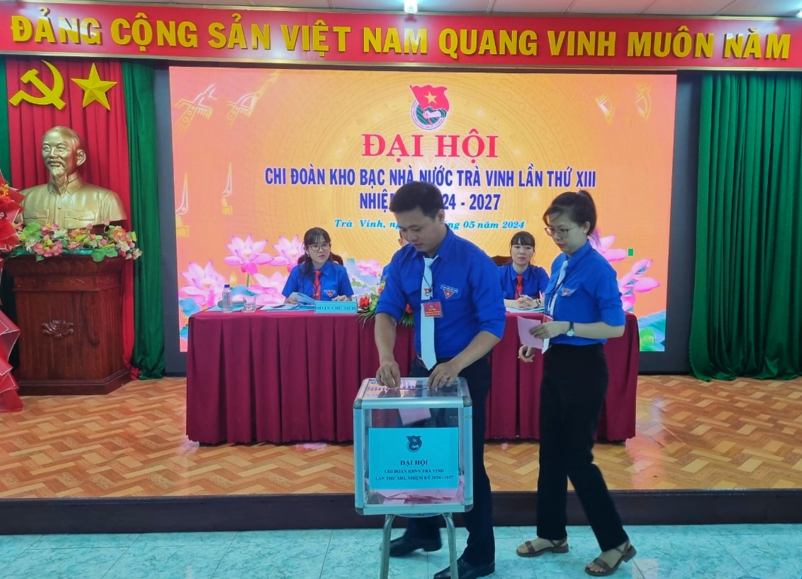 Chiều ngày 24/5/2024, tại Hội trường Chi đoàn Kho bạc Nhà nước Trà Vinh, Ban Chấp hành Chi đoàn Kho bạc Nhà nước Trà Vinh tổ chức Đại hội Chi đoàn lần thứ XIII, nhiệm kỳ 2024 – 2027. Đây là đơn vị thứ 04 tổ chức Đại hội Đoàn các cấp, nhiệm kỳ 2024 – 2027. Đại hội vinh dự đón tiếp đồng chí Phan Thị Cẩm Nang – Phó Bí thư Đoàn khối đến dự và chỉ đạo Đại hội; đồng chí Nguyễn Hữu Thọ – Đảng ủy viên, Phó Giám đốc, Chủ tịch CĐCS Kho bạc Nhà nước Trà Vinh và 16 đồng chí là đại biểu chính thức của chi đoàn được triệu tập tham dự Đại hội.