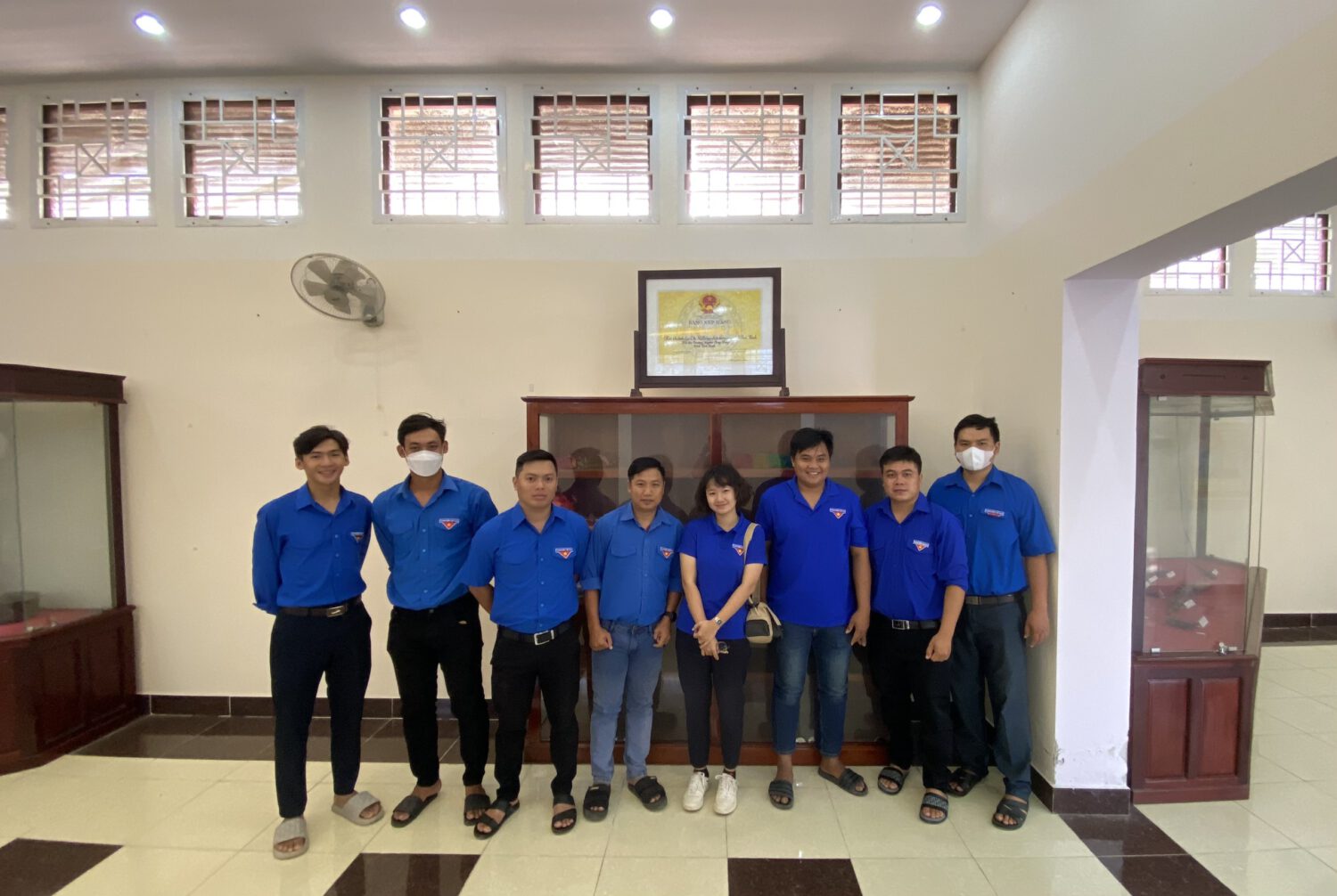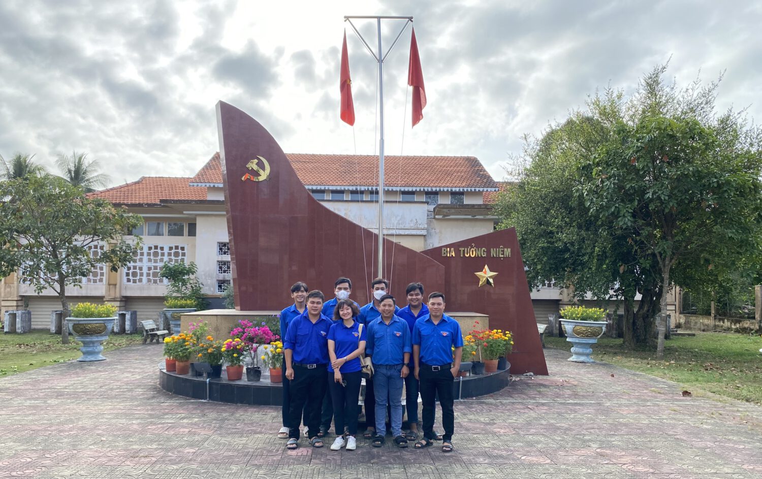 Đoàn viên chụp ảnh lưu niệm tại nơi thành lập Chi bộ Đảng đầu tiên