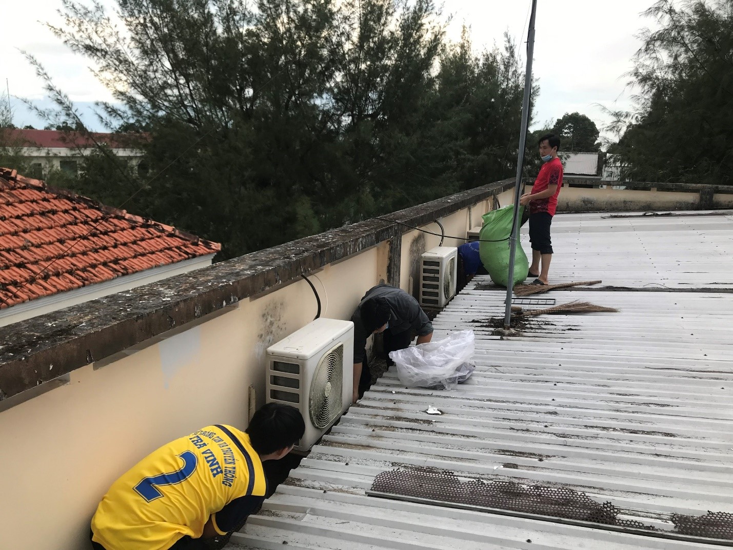 Đoàn viên chi đoàn vệ sinh máy nhà cơ quan