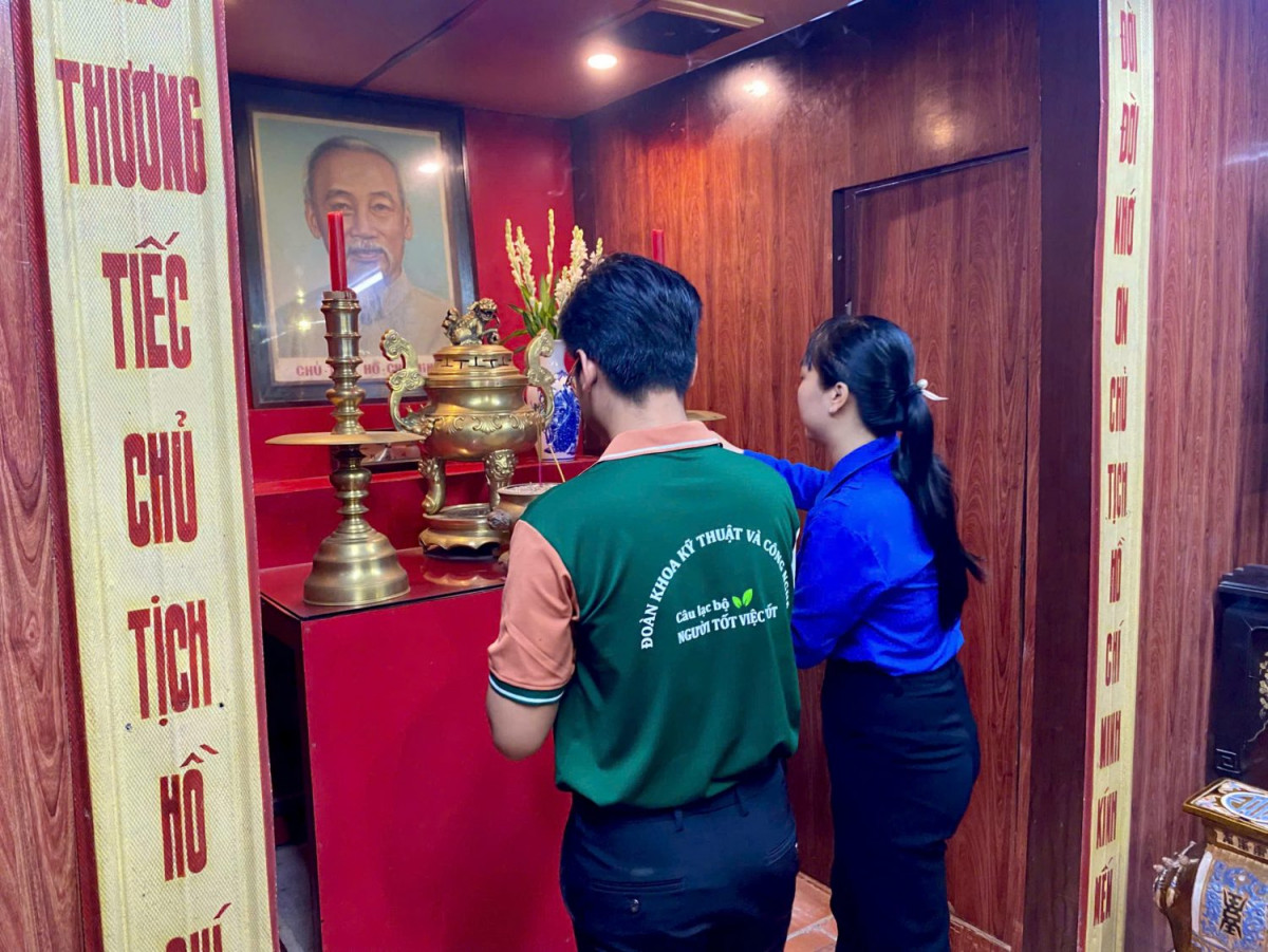 Trước khi trao quà, Đoàn đã có dịp ghé thăm và dâng hương tại Đền thờ Chủ tịch Hồ Chí Minh, tọa lạc tại ấp Vĩnh Hội, xã Long Đức – nơi linh thiêng, ghi dấu tình cảm đặc biệt của đồng bào miền Nam dành cho Bác. Tại đây, các đoàn viên cùng nhau ôn lại truyền thống hào hùng của dân tộc, tưởng nhớ công ơn vị lãnh tụ kính yêu và thầm hứa sẽ sống, hành động xứng đáng với thế hệ đi trước.