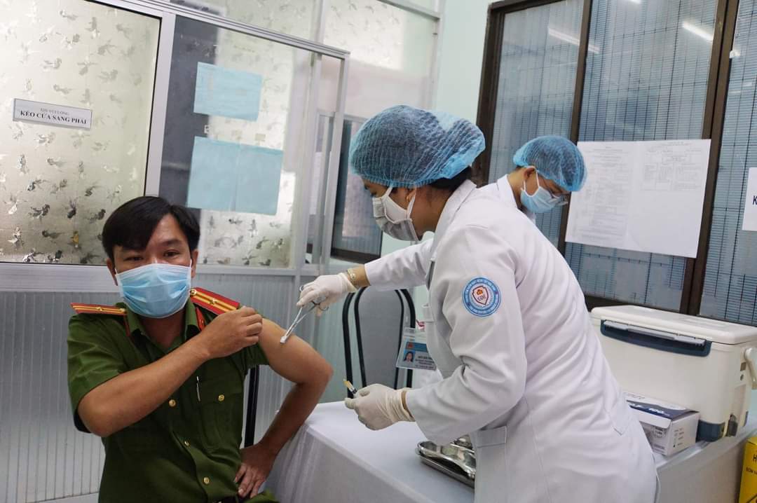 Đoàn viên Chi đoàn Trung tâm Kiểm soát bệnh tật tỉnh tiêm vắc xin phòng chống Covid-19 cho lực lượng cán bộ, chiến sĩ Công an tỉnh