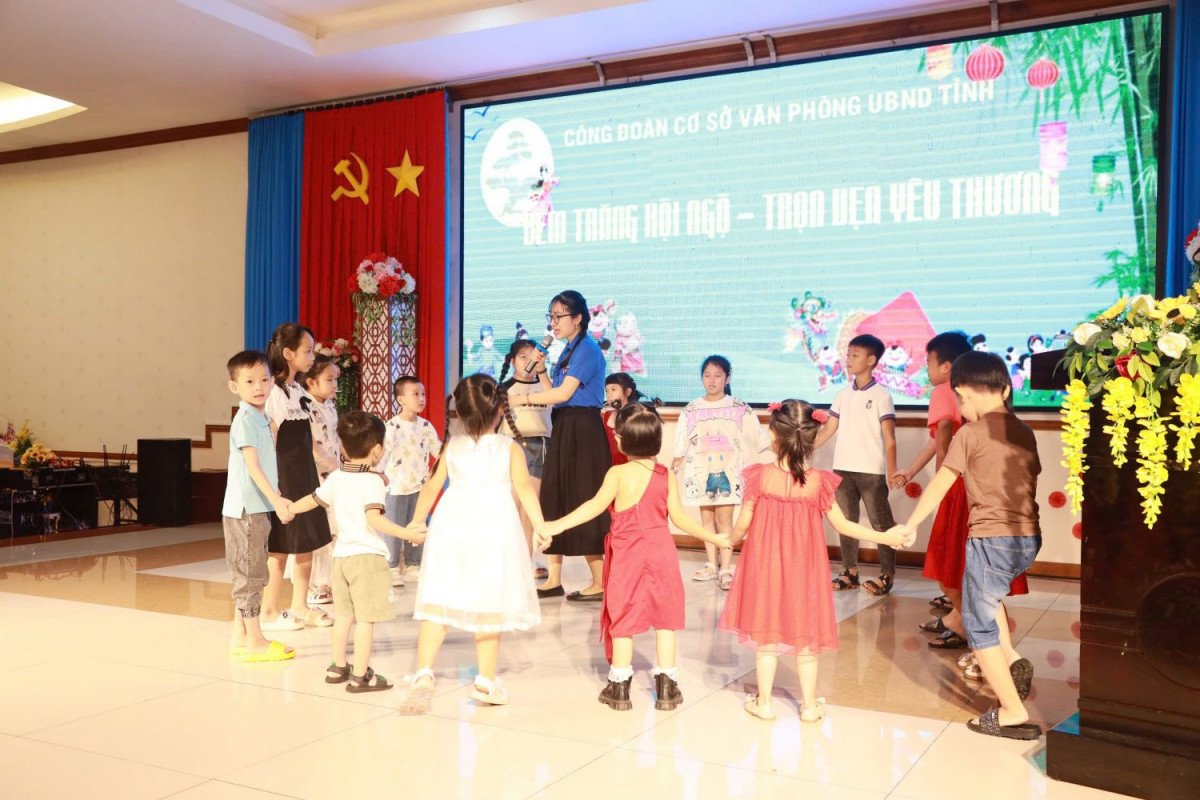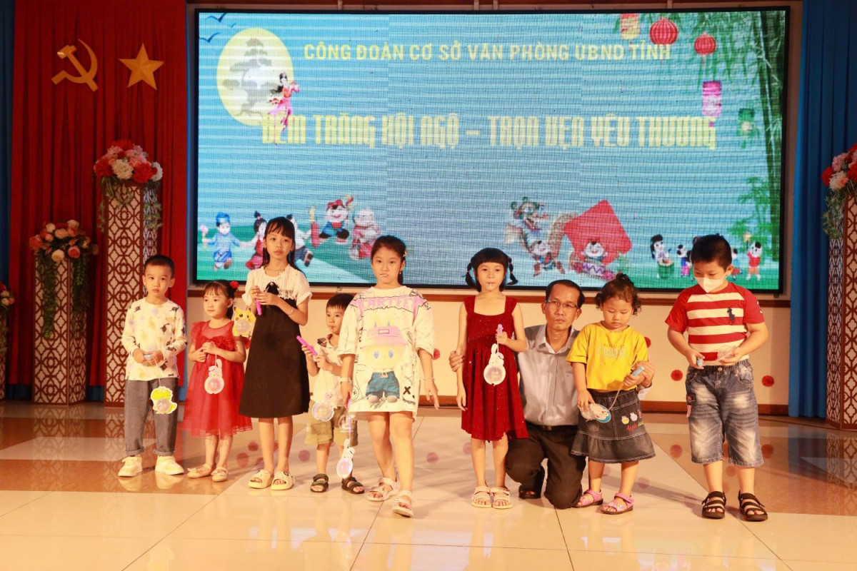 Hòa chung không khí vui tươi của ngày Tết Trung thu tối ngày 17/9/2024, Chi đoàn Văn phòng UBND tỉnh phối hợp với Công đoàn tổ chức chương trình Tết Trung thu năm 2024 với chủ đề “Đêm Trăng hội ngộ – Trọn vẹn yêu thương” cho các cháu thiếu nhi là con của cán bộ, công chức, viên chức và người lao động tại đơn vị. Tham dự có ông Tô Ngọc Bình – Chủ tịch Công đoàn, Phó Chánh Văn phòng UBND tỉnh; ông Lâm Văn Tốt – Ủy viên Ban Chấp hành Công đoàn; Chi đoàn Văn phòng UBND tỉnh cùng các em thiếu nhi là con các cán bộ, công chức, viên chức và người lao động đến tham dự, góp phần cho không khí chương trình thêm phần sôi nổi, vui tươi.