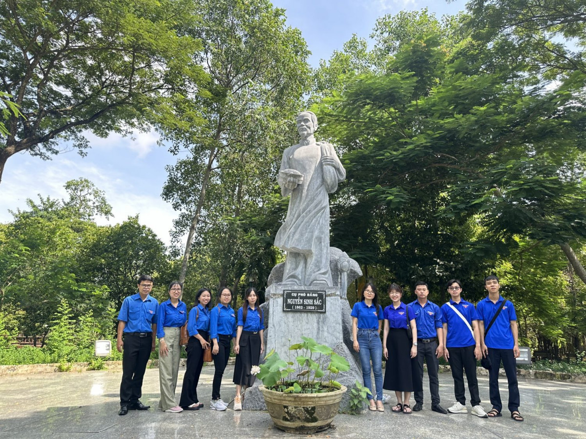 Chi đoàn chụp hình lưu niệm tại tượng cụ Phó bảng Nguyễn Sinh sắc