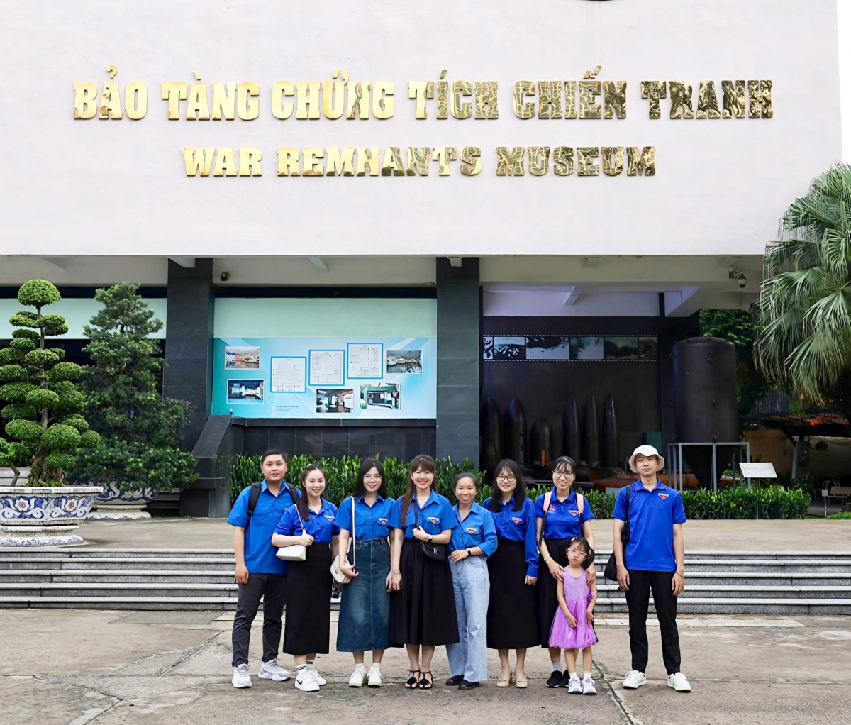 Bên cạnh đó, Đoàn còn đến tham quan Bảo tàng Chứng tích Chiến tranh. Tại đây, đoàn viên được tiếp cận các chuyên đề: “Thế giới ủng hộ Việt Nam kháng chiến chống Mỹ”, “Tội ác chiến tranh xâm lược”, “Hậu quả chất độc màu da cam”… Những hiện vật và tư liệu trưng bày tại bảo tàng không chỉ tái hiện chân thực tội ác chiến tranh mà còn phản ánh sự đồng hành của bạn bè quốc tế với cuộc đấu tranh giành độc lập dân tộc của nhân dân Việt Nam. Ngoài ra, Đoàn cũng ghé thăm Bảo tàng Phụ nữ Nam Bộ, nơi lưu giữ và giới thiệu những hiện vật, tư liệu quý về vai trò và những cống hiến to lớn của phụ nữ Nam Bộ trong sự nghiệp cách mạng, xây dựng và bảo vệ Tổ quốc. Qua đó, đoàn viên thêm hiểu và trân trọng những đóng góp âm thầm nhưng vô cùng to lớn của những người mẹ, người chị trong suốt chiều dài lịch sử dân tộc.