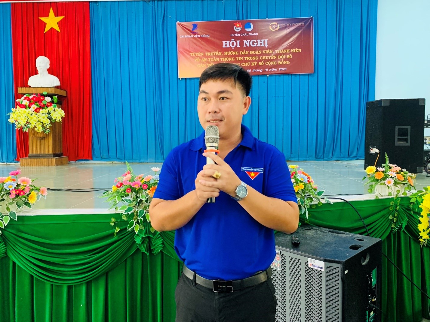 Hưởng ứng Ngày chuyển đổi số quốc gia (10/10) năm 2023, ngày 05/10/2023 tại Hội trường Phòng Giáo dục và Đào tạo huyện Châu Thành, Chi đoàn VNPT Trà Vinh phối hợp huyện đoàn Châu Thành tổ chức tuyên truyền, hướng dẫn đoàn viên, thanh niên về an toàn thông tin trong chuyển đổi số gắn với triển khai chữ ký số cộng đồng.