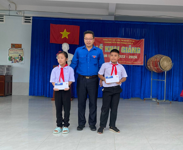 Nhân dịp khai giảng năm học mới, sáng ngày 5/9/2023, Chi đoàn Viễn thông Trà Vinh phối hợp với Xã đoàn Phong Phú, huyện Cầu Kè tổ chức trao tặng quà cho các em học sinh có hoàn cảnh khó khăn trên địa bàn xã.