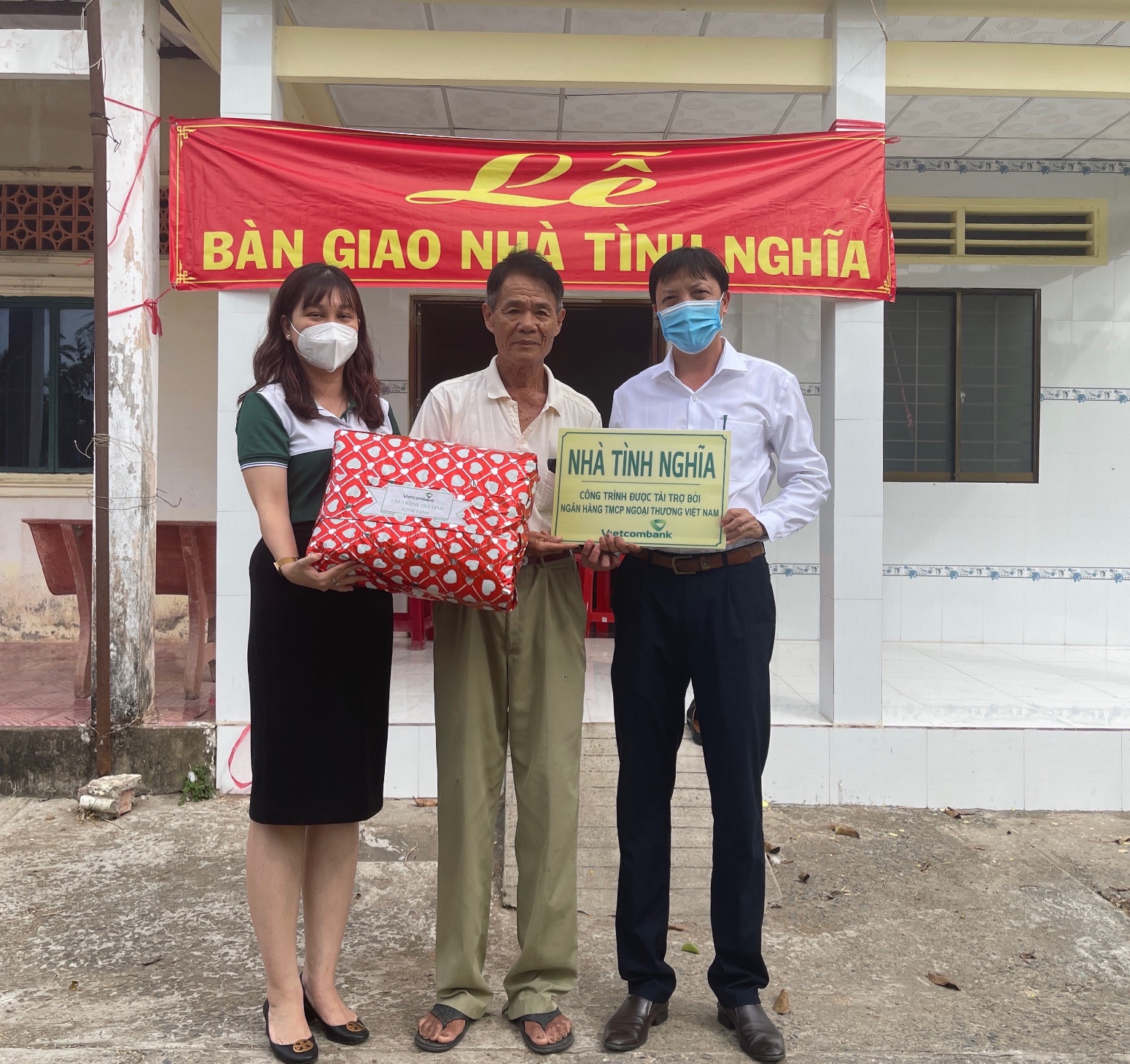 Phát huy truyền thống uống nước nhớ nguồn, đền ơn đáp nghĩa, hỗ trợ giúp đở các gia đình, cá nhân có công với cách mạng hiện đang còn khó khăn về nhà ở. Ngày 24/02/2022, Vietcombank Chi nhánh Trà Vinh tổ chức lễ bàn giao trao tặng 02 căn nhà tình nghĩa cho 02 gia đình thương binh, có công với cách mạng tại xã Vinh Kim, huyện Cầu Ngang (nguồn kinh phí do Ngân hàng TMCP Ngoại thương Trà Vinh hỗ trợ xây dựng mỗi căn trị giá 50 triệu đồng)