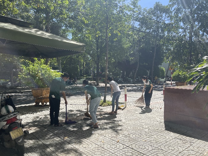 Đoàn viên thanh niên quét dọn xung quanh khuôn viên Công ty