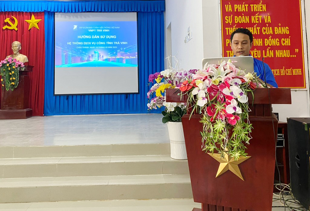 Sáng ngày 13/3/2023, Đoàn thanh niên VNPT Trà Vinh phối hợp với Huyện đoàn Châu Thành tổ chức Hội nghị tập huấn “chuyển đổi số cộng đồng cho cán bộ Đoàn – Hội” trên địa bàn huyện Châu Thành. Tham dự hội nghị có đồng chí Lê Minh Thư, Bí thư Huyện Đoàn – Phó chủ tịch Hội LHTN Việt Nam huyện; đồng chí Nguyễn Chí Thanh, UVBCH Đoàn Khối Cơ quan – Bí thư Đoàn thanh niên VNPT Trà Vinh; các đồng chí là chuyên viên VNPT Trà Vinh và cùng hơn 145 đồng chí là cán bộ Đoàn – Hội trên địa bàn huyện Châu Thành, Chi hội Sinh viên Châu Thành trường Đại học Trà Vinh.