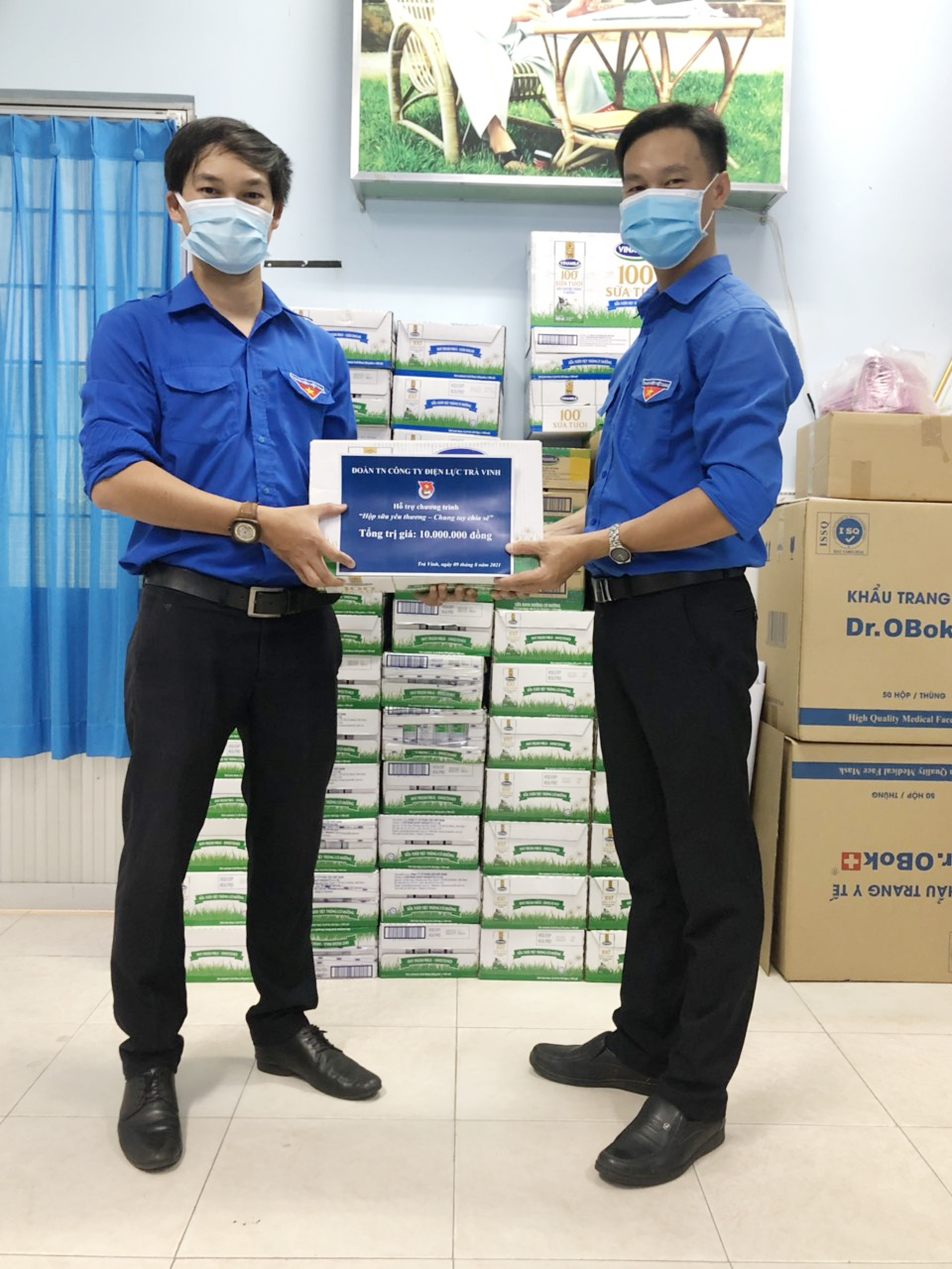 Đồng chí Nguyễn Trọng Nhân – Bí thư Đoàn khối trao 30 thùng sữa tươi cho khu phong tỏa, khu cách ly tại huyện Trà Cú