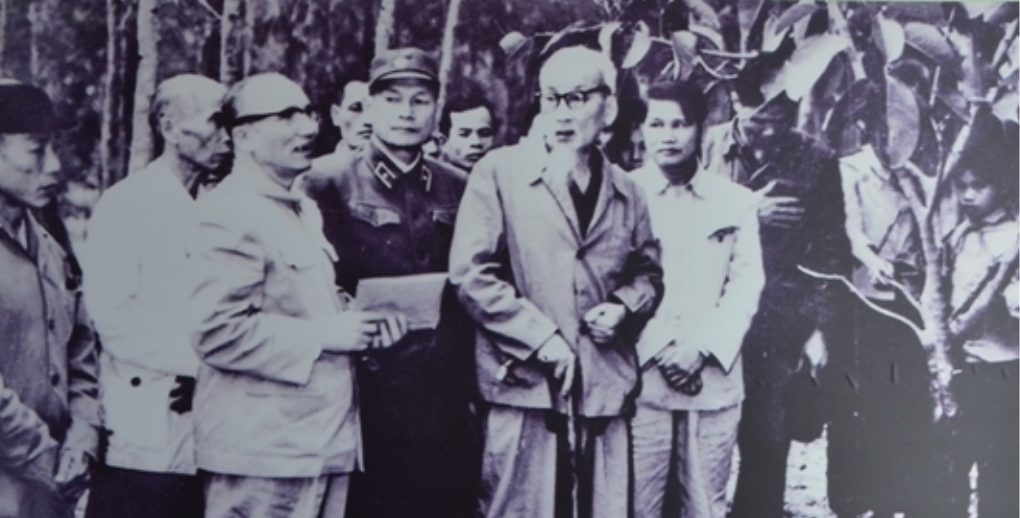 Hàng đầu từ trái sang: Đồng chí Nguyễn Lương Bằng, Tướng Phạm Kiệt và Chủ tịch Hồ Chí Minh. Ảnh: Tư liệu