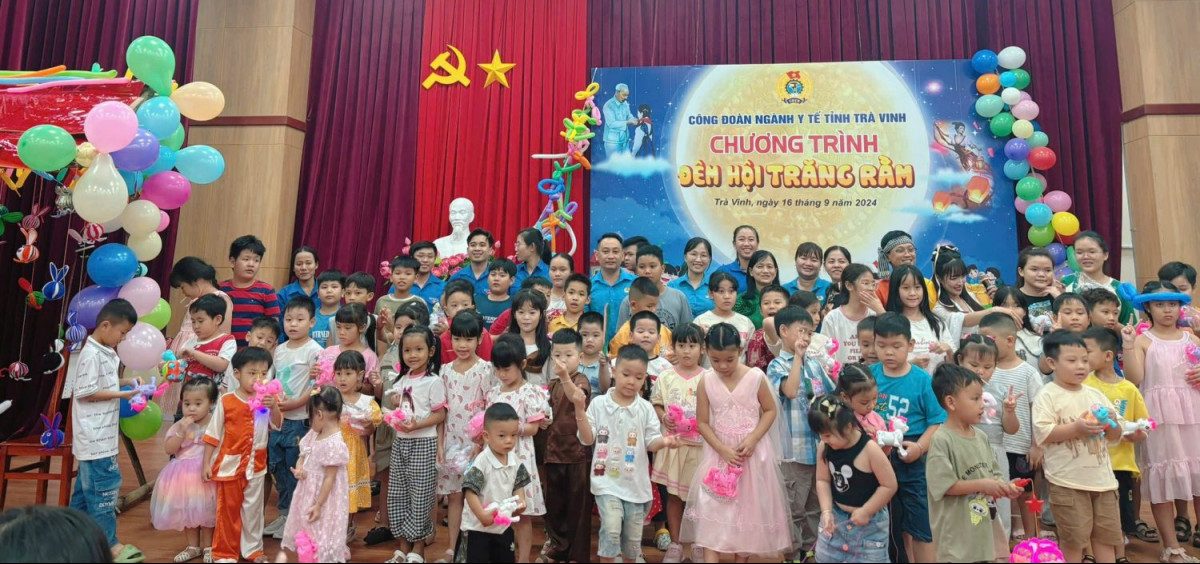 Tối ngày 16/9/2024, Đoàn thanh niên Bệnh viện Đa khoa tỉnh Trà Vinh phối hợp với Công đoàn tổ chức Tết Trung thu cho con em cán bộ, nhân viên bệnh viện. Tham dự chương trình có Tiến sĩ bác sĩ Trần Kiến Vũ – Giám đốc Bệnh viện; ông Nguyễn Trọng Thái – Chủ tịch Công đoàn ngành Y tế và sự góp mặt của trên 200 em thiếu nhi.