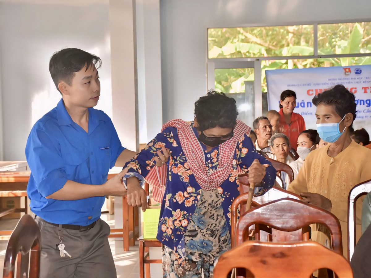 Với chủ đề “Xuân kết nối – Tết yêu thương” sáng ngày 18/01/2025, Đoàn cơ sở Sở Y tế phối cùng Chi đoàn viên chức Bệnh viện Trường Đại học Trà Vinh, Công ty cổ phần Dược phẩm FPT Long Châu, Hệ thống Nha khoa Sài Gòn tổ chức Chương trình “Khám, cấp phát thuốc, tặng quà” cho người dân có hoàn cảnh khó khăn tại Xã Trường Thọ, Huyện Cầu Ngang.