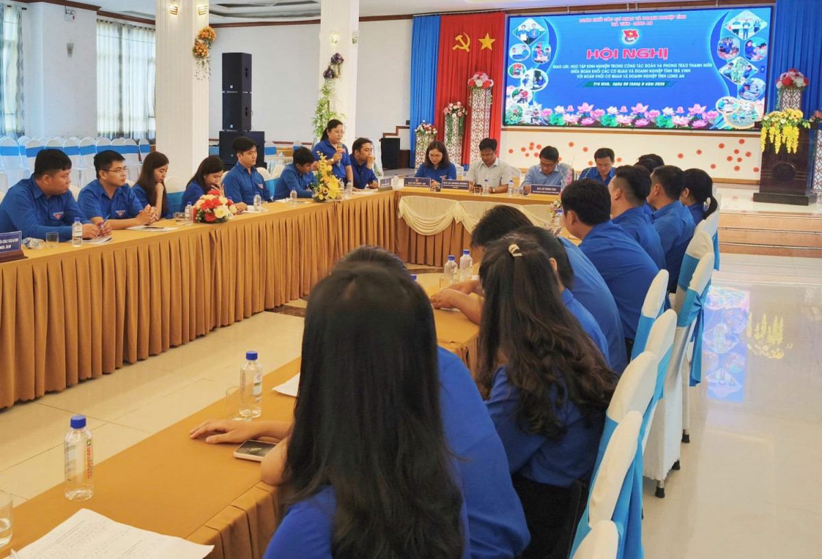 Phát biểu tại Hội nghị, đồng chí Nguyễn Trọng Nhân – Đảng ủy viên, UVBTV Tỉnh đoàn, Bí thư Đoàn Khối các cơ quan và doanh nghiệp tỉnh Trà Vinh cho biết “Trà Vinh – Long An là hai tỉnh có nhiều điểm tương đồng như: vị trí địa lý, kinh tế nông nghiệp, văn hóa, giao thông, khí hậu,…Song về công tác Đoàn cả hai đều chú trọng vào việc tuyên truyền, giáo dục chính trị, tư tưởng cho đoàn viên, thanh niên, các hoạt động học tập, quán triệt nghị quyết của Đảng và Đoàn được tổ chức thường xuyên; tích cực tham gia các hoạt động, phong trào thanh niên tình nguyện, rèn luyện kỹ năng, nâng cao tay nghề và phát triển nghề nghiệp cho đoàn viên. Về hoạt động xã hội, cả hai Đoàn khối đều tổ chức nhiều hoạt động xã hội như: thăm hỏi, tặng quà cho các gia đình chính sách, Mẹ Việt Nam anh hùng, và các hoạt động hỗ trợ người dân gặp khó khăn”, …
