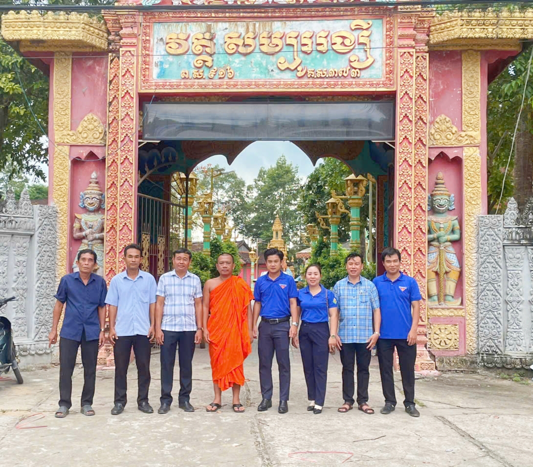 Tại đây, đồng chí Lâm Chí Trung – UVBCH Tỉnh đoàn, Phó Bí thư Thường trực Đoàn khối đã trao tặng 01 phần quà và ân cần thăm hỏi, chúc sức khỏe các vị chức sắc, sư sãi, ban quản trị chùa. Đồng thời mong muốn, các vị sư sãi, ban quản trị và đồng bào phật tử Khmer tiếp tục thực hiện tốt chủ trương của Đảng, chính sách, pháp luật của Nhà nước, quy định của địa phương. Phát huy truyền thống đoàn kết, nỗ lực khắc phục khó khăn, giúp đỡ nhau trong cuộc sống, tích cực thi đua lao động, sản xuất, kinh doanh phát triển kinh tế gia đình, góp phần xây dựng quê hương ngày càng giàu đẹp.