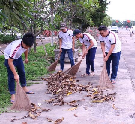 (Đoàn viên trường Cao đẳng Nghề tổng vệ sinh tại Đền thờ Bác ngày 10/3/2019)