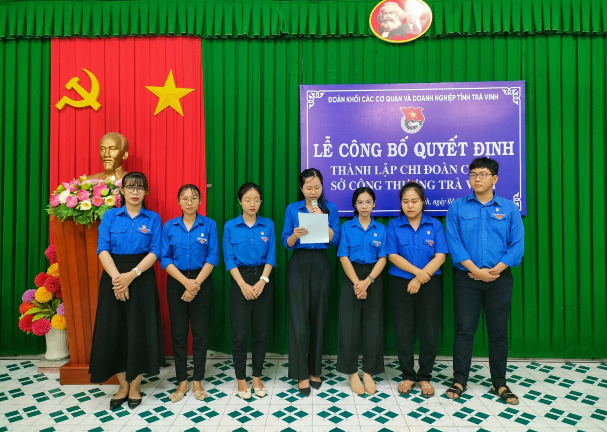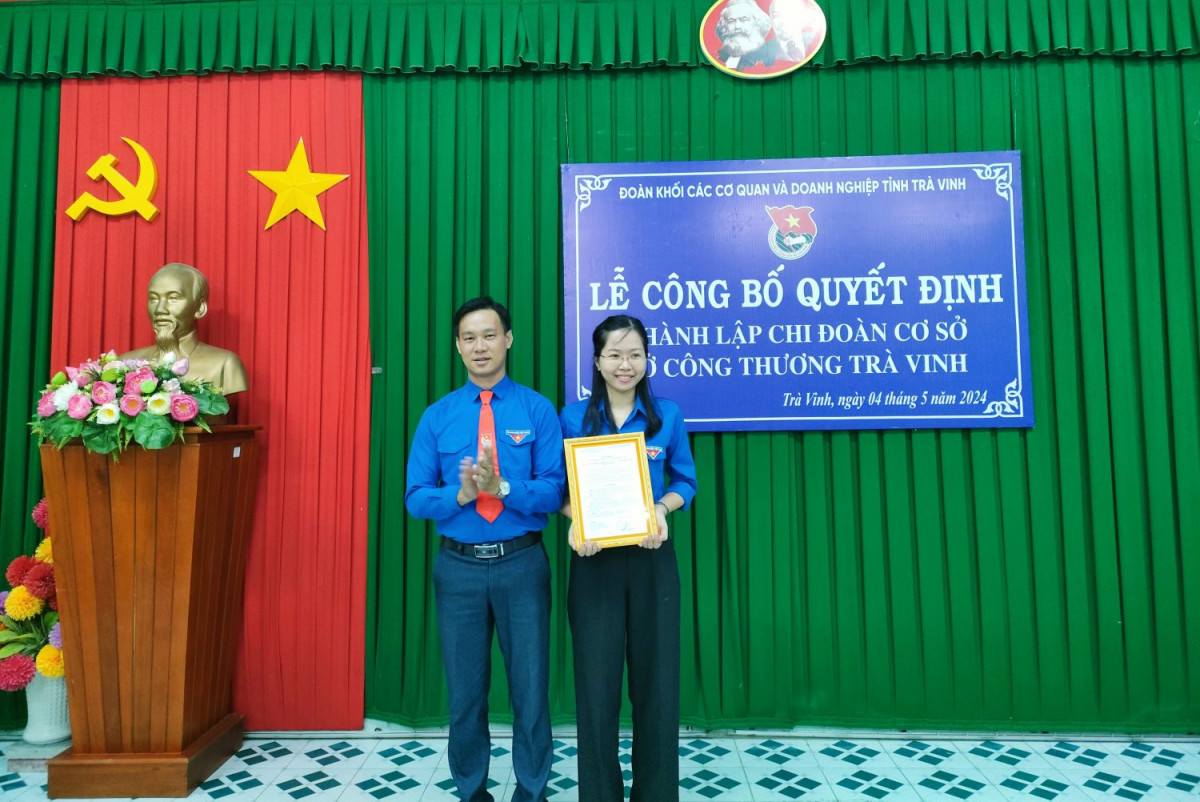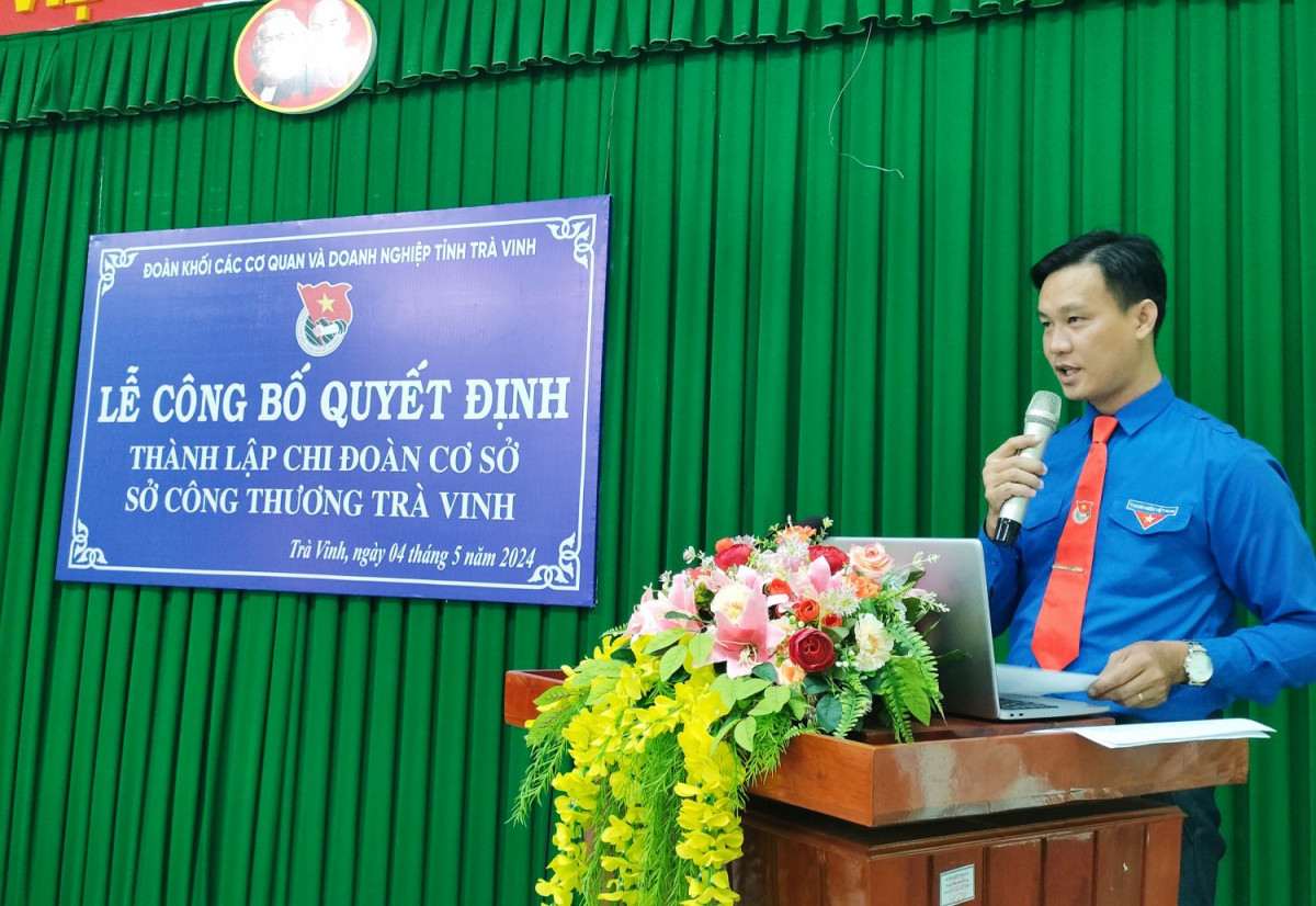 Tại buổi lễ, đồng chí Nguyễn Trọng Nhân – Đảng uỷ viên, UVTV Tỉnh đoàn, Bí thư Đoàn khối đã trao quyết định thành lập Chi đoàn lâm thời gồm 07 đoàn viên. Đồng chí Nguyễn Phương Uyên được chỉ định giữ chức vụ Bí thư Chi đoàn Sở Công thương lâm thời.