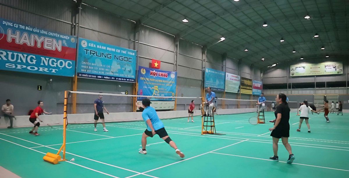 Đoàn khối tham gia nội dung cầu lông đôi nam nữ.
