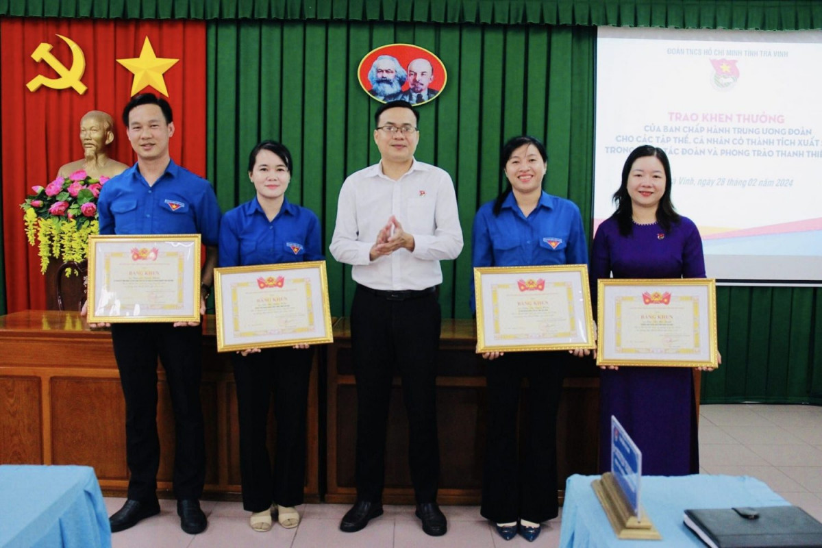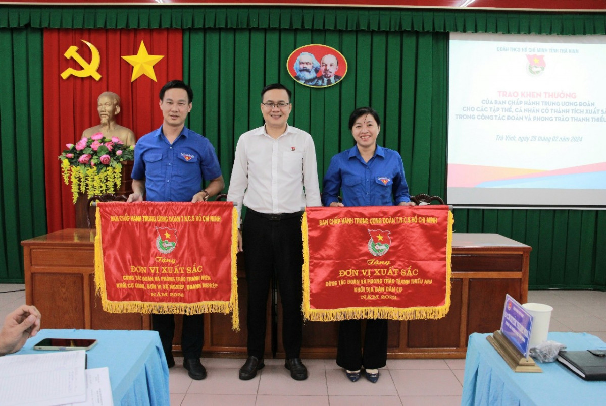 Chiều ngày 28/02/2024, tại hội trường Tỉnh đoàn Trà Vinh. Thường trực Tỉnh đoàn tổ chức trao cờ thi đua và bằng khen của Ban Chấp hành Trung ương Đoàn cho các tập thể, cá nhân có thành tích xuất sắc trong công tác Đoàn và phong trào thanh niên năm 2023.