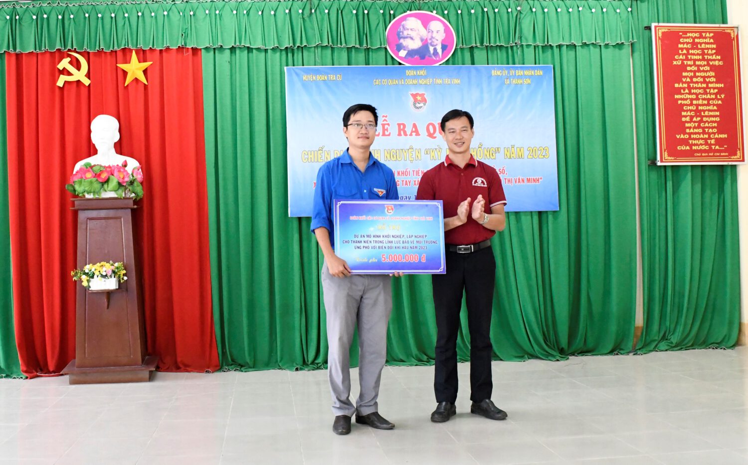 Đ/c Nguyễn Trọng Nhân – Đảng ủy viên, Bí thư Đoàn khối các cơ quan và doanh nghiệp tỉnh trao nguồn vốn hỗ trợ hoàn thiện dự án