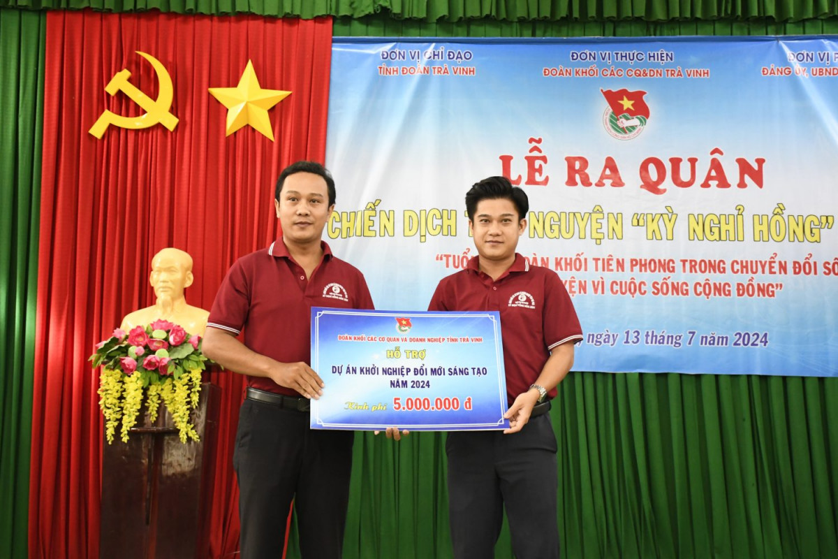 Đồng chí Lâm Chí Trung – UVBCH Tỉnh đoàn, Phó Bí thư Thường trực Đoàn khối trao nguồn vốn hỗ trợ thực hiện hóa dự án
