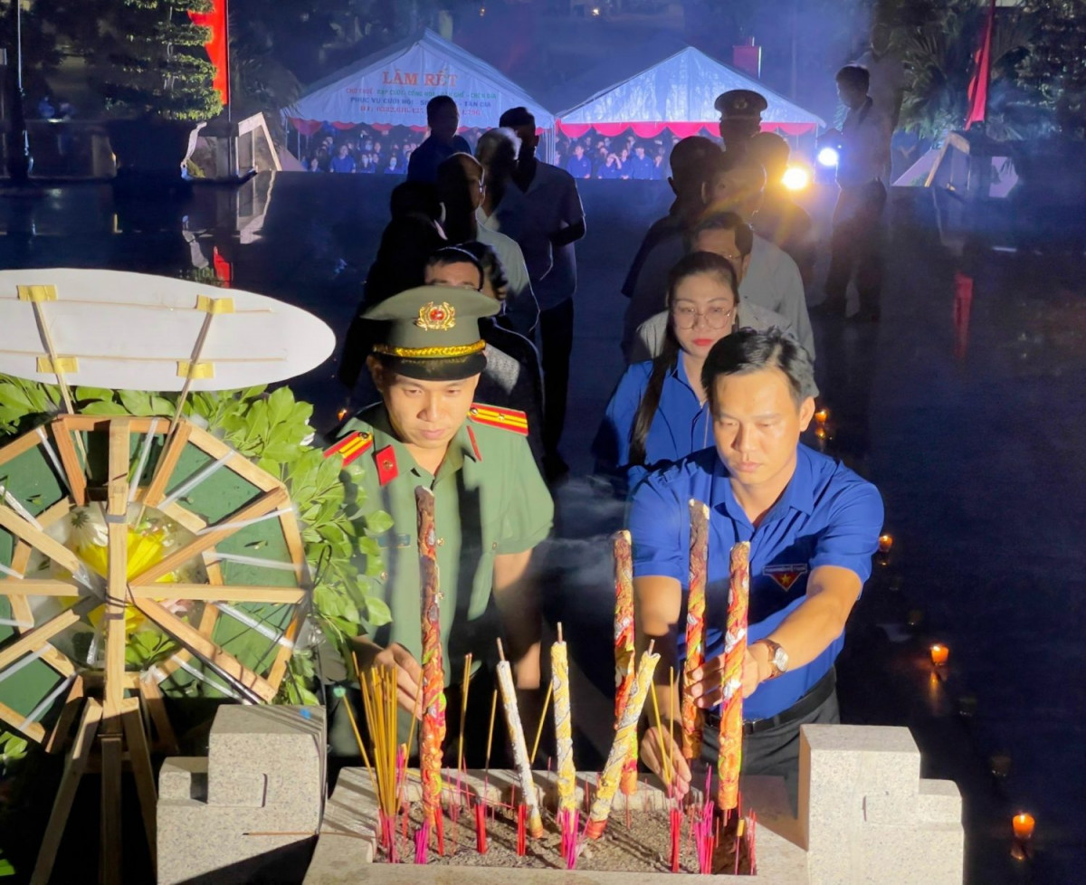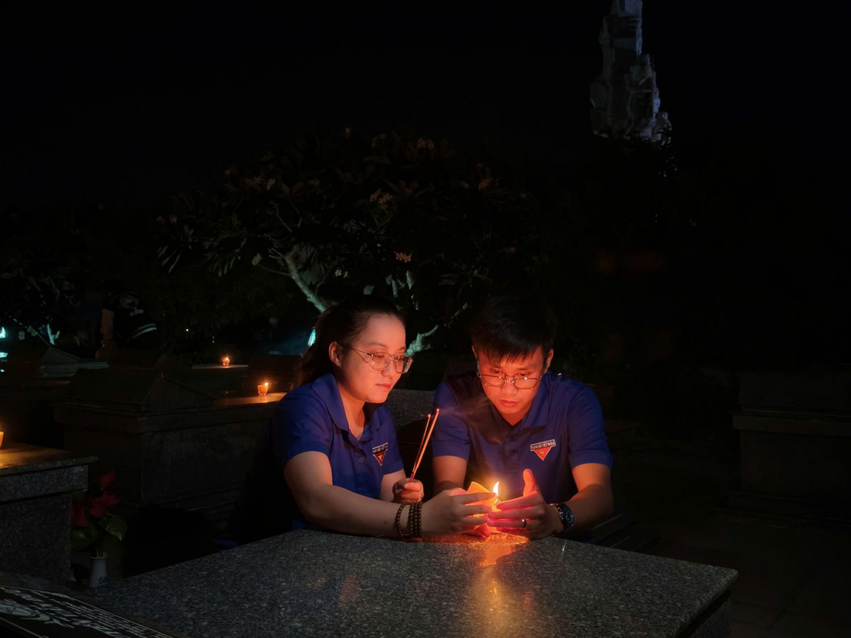 Đoàn viên thắp nến tri ân các anh hùng liệt sĩ tại Nghĩa trang liệt sĩ tỉnh