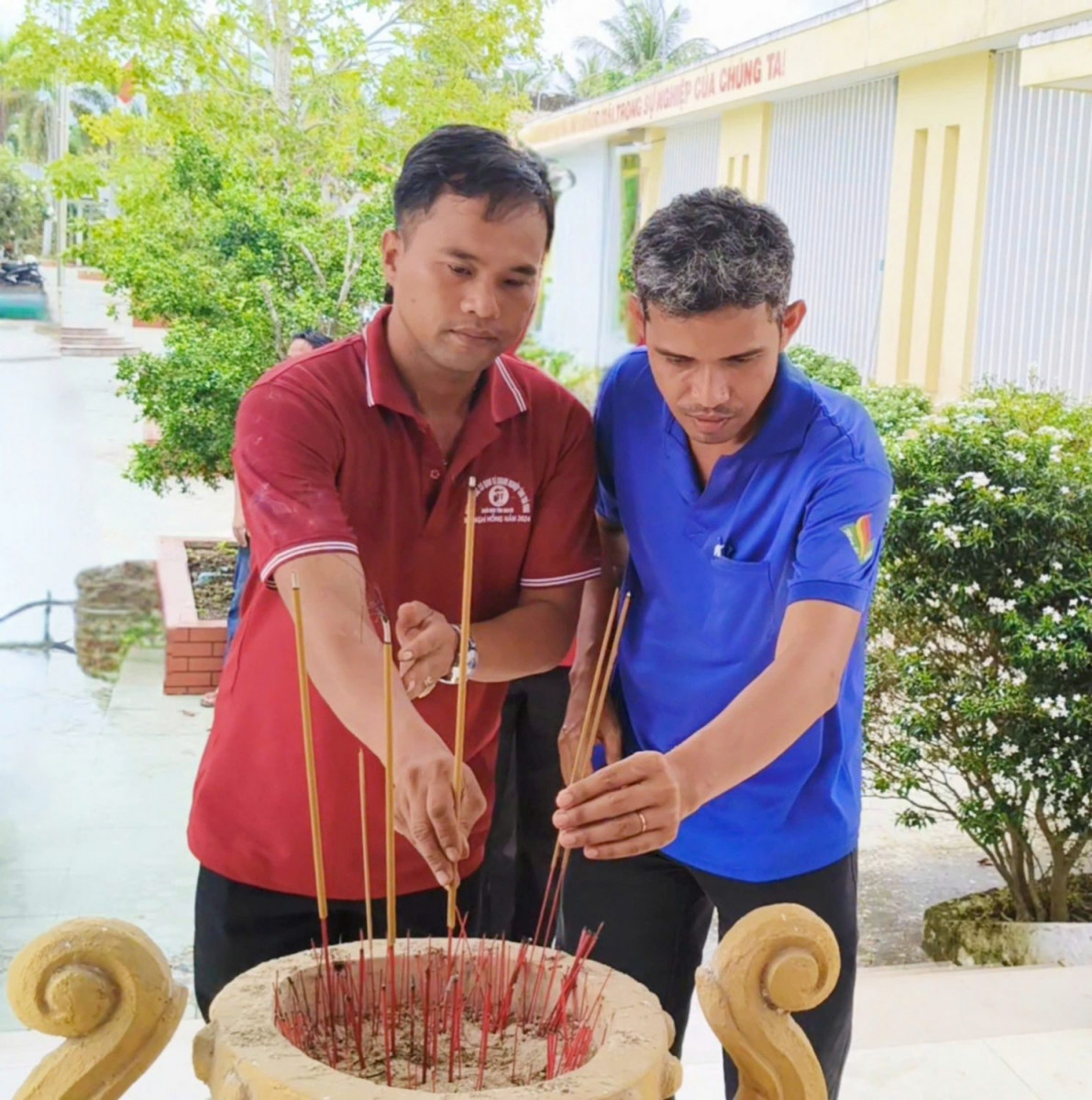Chiến sĩ Kỳ nghỉ hồng thắp hương tại Nhà bia ghi danh Liệt sĩ xã Hiếu Tử