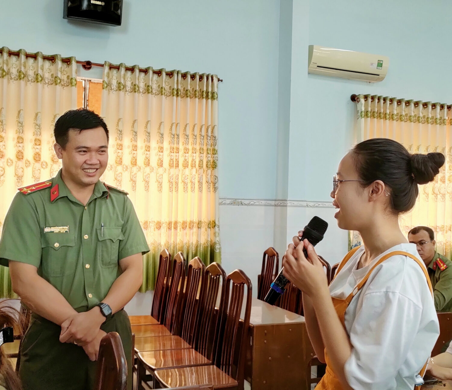 Đồng chí Nguyễn Quốc Toàn – Phó Bí thư Đoàn thanh niên Công an tỉnh trao đổi với đoàn viên về lợi ích của việc cài đặt, sử dụng ứng dụng VNeID