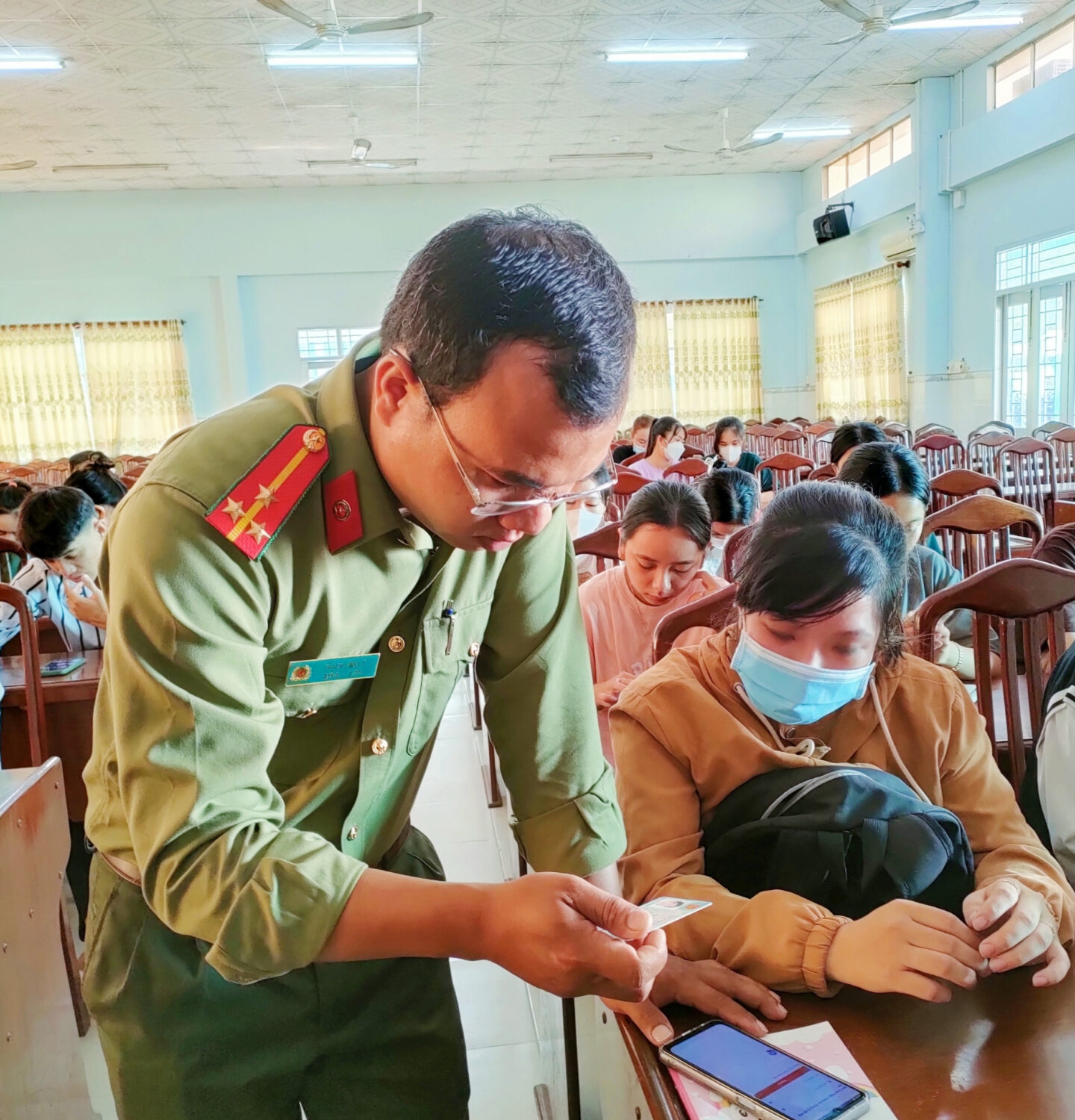 Tại đây, các bạn đoàn viên đã được nghe đồng chí Nguyễn Quốc Toàn – Phó Bí thư Đoàn thanh niên công an tỉnh giới thiệu sơ về đề án phát triển ứng dụng dữ liệu về dân cư, định danh và xác thực điện tử phục vụ chuyển đổi số quốc gia giai đoạn 2022 -2025, tầm nhìn đến năm 2030 (gọi tắt là đề án 06). Ngoài ra, đồng chí Nguyễn Quốc Toàn còn giới thiệu về việc tích hợp, sử dụng tài khoản định danh điện tử thay thế các giấy tờ tuỳ thân cần những điều kiện nào, quy trình cấp tài khoản định danh điện tử, lợi ích của tài khoản định danh điện tử,…Quan trọng nhất là, việc hướng dẫn tải và cài đặt ứng dụng VNeID trên điện thoại di động, đăng ký tài khoản ứng dụng VNeID, cách đăng nhập dịch vụ công của Bộ Công an cũng được báo cáo viên tuyên truyền, hướng dẫn một cách cụ thể.
