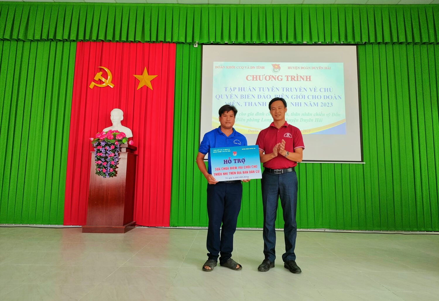 Bên cạnh đó, Đoàn cũng đã phối hợp tổ chức lớp tập huấn với chuyên đề “tuyên truyền về chủ quyền biển đảo, biên giới” cho đoàn viên thanh thiếu nhi năm 2023. Qua đó, nhằm tuyên truyền, nâng cao nhận thức, trách nhiệm của tuổi trẻ trong việc bảo vệ chủ quyền biển đảo, biên giới quốc gia.
