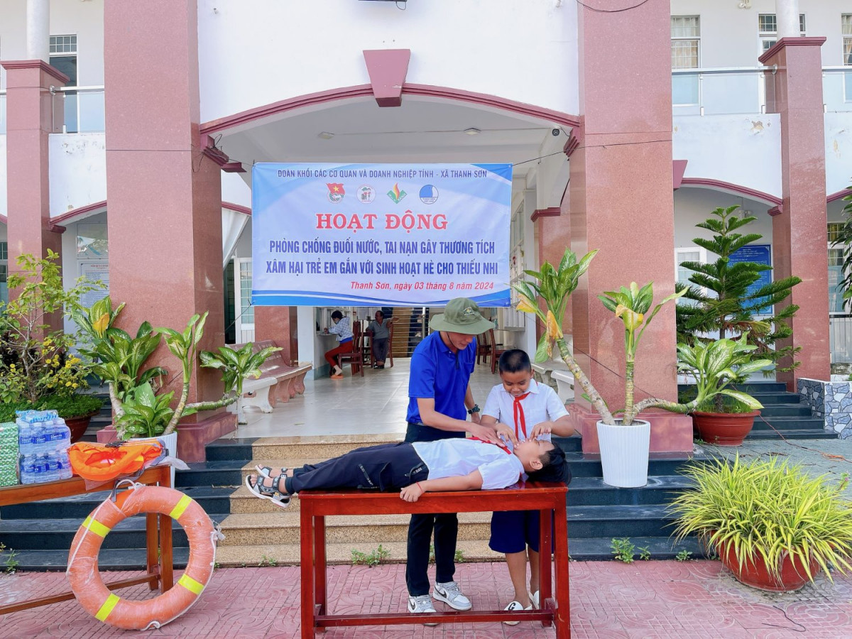 Bên cạnh đó, các chiến sĩ tình nguyện cùng lực lượng địa phương tham gia lớp tập huấn nâng phòng chống đuối nước, tai nạn thương tích cho thanh thiếu nhi và tổ chức thư viện lưu động ôn tập sinh hoạt hè cho trên 100 em thiếu nhi trên địa bàn xã.Tại đây, các em còn được tham gia nhiều trò chơi như: đuổi hình bắt chữ, đố vui có thưởng, đọc sách,…Đây chính là dịp để cho các em có cơ hội gặp gỡ, giao lưu, vui chơi thỏa thích sau một năm học.