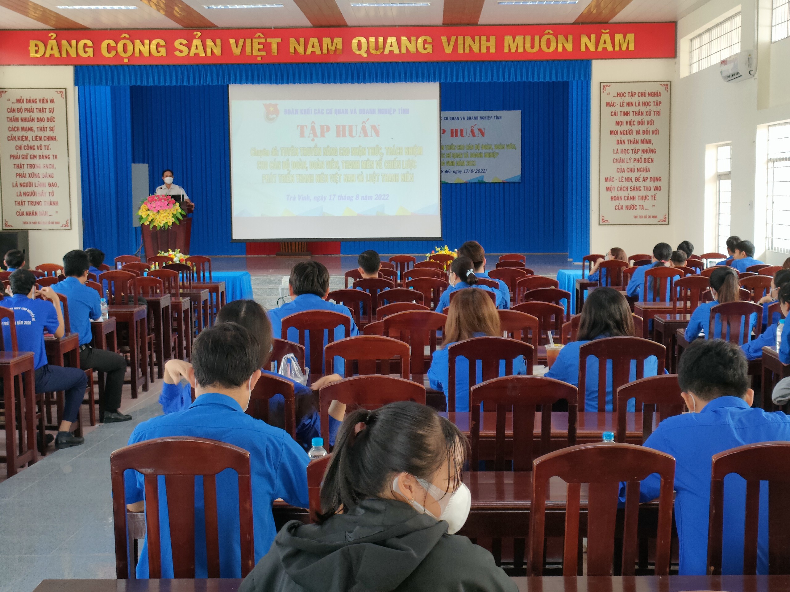 Chiều ngày 17/8/2022, tại Hội trường Trung tâm Bồi dưỡng chính trị thành phố Trà Vinh. Ban Thường vụ Đoàn khối các cơ quan và doanh nghiệp tỉnh tổ chức lớp tập huấn tuyên truyền nâng cao nhận thức cho đội ngũ báo cáo viên và đoàn viên thanh niên về Luật Thanh niên và Chiến lược phát triển thanh niên Việt Nam giai đoạn 2021 – 2030.
