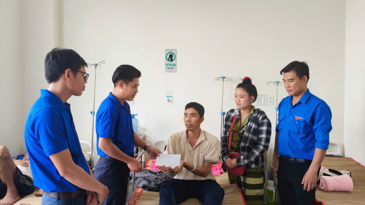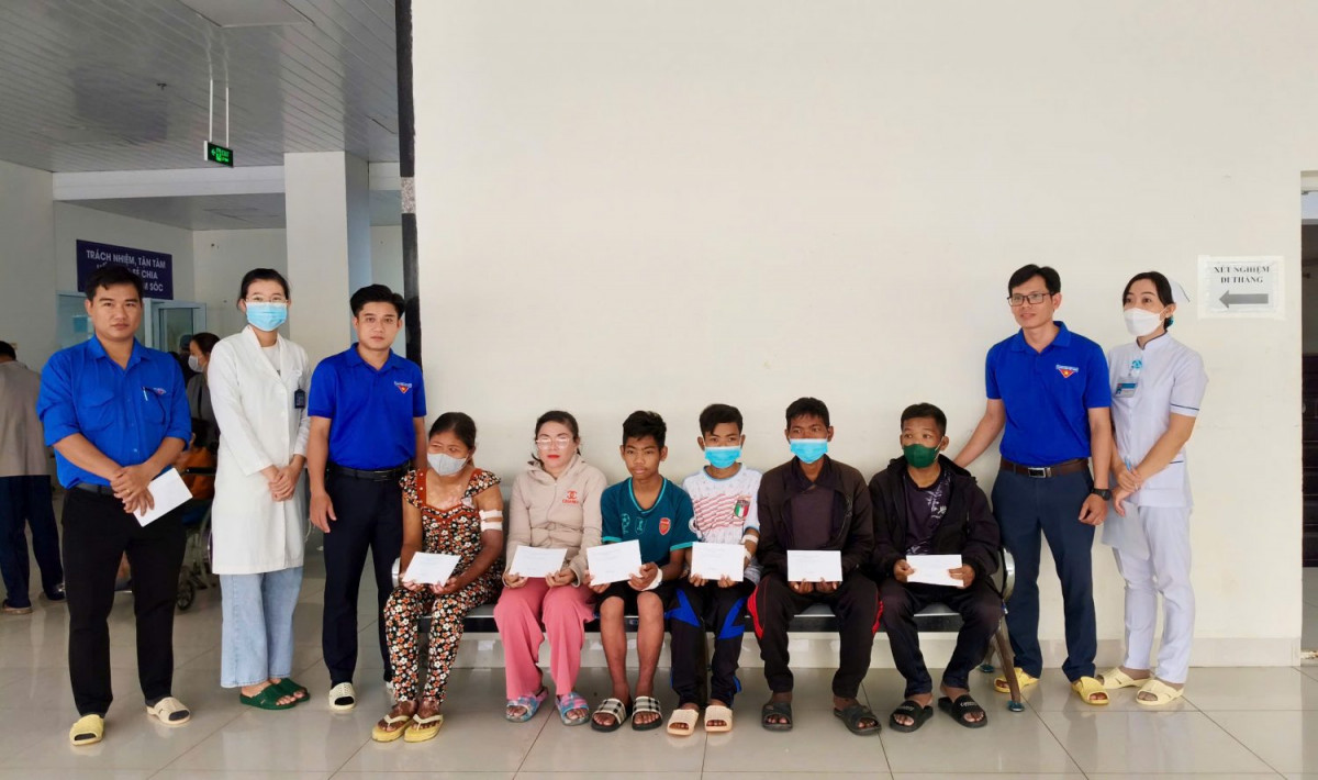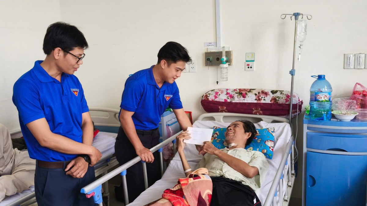 Tại đây, Đoàn đã đến thăm các bệnh nhân đang điều trị tại Khoa Ung bướu và Khoa Nội thận lọc máu. Tại mỗi nơi đến, đồng chí Lâm Chí Trung – UVBCH Tỉnh đoàn, Phó Bí thư Thường trực Đoàn khối đã ân cần thăm hỏi, động viên các bệnh nhân. Dịp này, Đoàn đã trao tặng 20 phần quà (mỗi phần trị giá 500.000đ, nguồn kinh phí do cán bộ đoàn viên thanh niên trong khối đóng góp). Những phần quà tuy không mang nhiều giá trị vật chất nhưng chứa đựng tình cảm của Tuổi trẻ Đoàn khối với mong muốn các bệnh nhân và người nhà sẽ an tâm điều trị bệnh để được sớm về với gia đình.