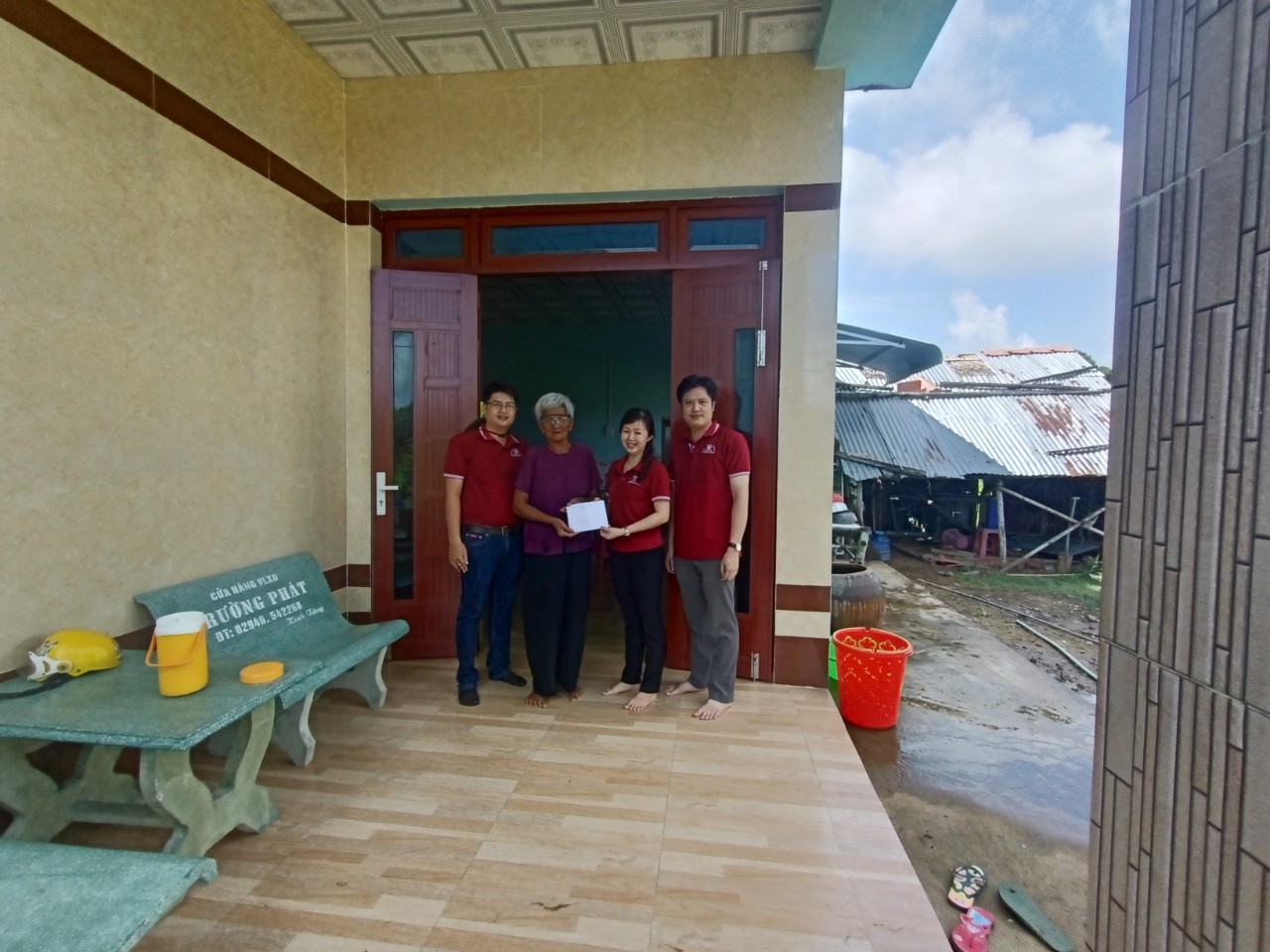 Đồng chí Phan Thị Cẩm Nang (thứ hai từ phải qua) – Phó Bí thư Đoàn khối, Bí thư Chi đoàn Tòa án Nhân dân tỉnh thăm, tặng quà cho cô Sơn Thị Sene, Cựu TNXP xã Thạnh Hòa Sơn (huyện Cầu Ngang)