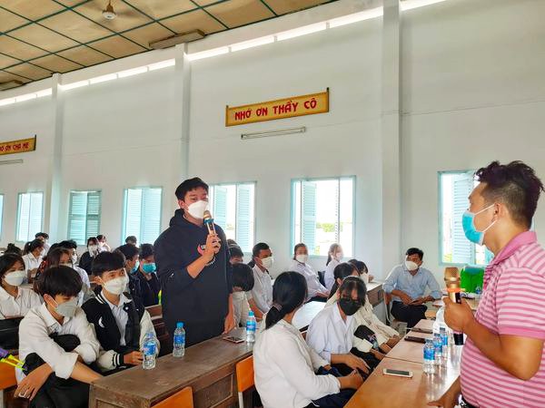 Tại đây, Thầy Cao Văn Cang – Thạc sỹ, giảng viên Trường Đại học Văn Lang đã thông tin đến các bạn học sinh một số nguyên nhân dẫn đến tình trạng bạo lực học đường thông qua những số liệu, hình ảnh, vụ án,….Từ đó giúp các bạn đưa ra các biện pháp phòng chống như: kìm chế cảm xúc của bản thân, quan tâm, giúp đỡ mọi người,…Đồng thời, thông qua chương trình Thầy còn mang đến cho các bạn những kiến thức về pháp luật, kỹ năng làm việc nhóm, thuyết trình,…góp phần giúp ích cho con đường học vấn của các bạn sắp tới.