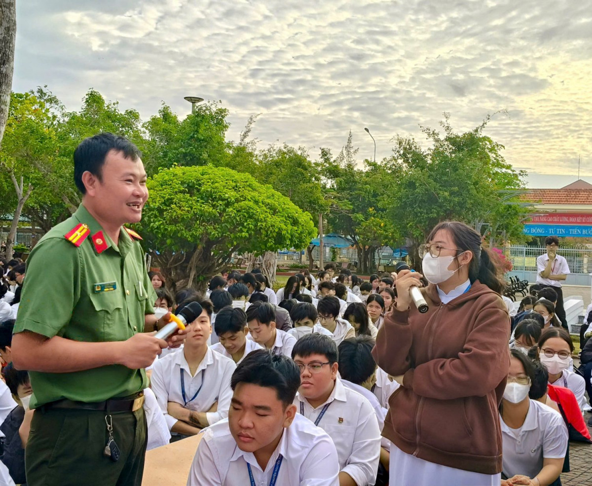 Tại chương trình, các bạn đoàn viên thanh niên đã được nghe đồng chí Lý Thanh Trung – Ủy viên Ban Thường vụ Tỉnh Đoàn, Trưởng ban Thanh niên Công an tỉnh cung cấp những thông tin quan trọng về thực trạng tệ nạn ma túy hiện nay; bản chất, nguồn gốc của ma túy; cách phân loại ma túy; một số loại ma túy được sử dụng phổ biến hiện nay như cần sa, heroin, Methamphetamine (hàng đá), Amphétamine, MDMA (thuốc lắc), cỏ Mỹ…các thủ đoạn tinh vi mà tội phạm ma túy sử dụng để lôi kéo thanh thiếu niên, học sinh và những hệ lụy nghiêm trọng mà ma túy gây ra đối với cá nhân, gia đình và xã hội. Từ đó, kêu gọi các em nâng cao ý thức cảnh giác, tránh xa và tuyệt đối không sử dụng ma túy. Bên việc lắng nghe các thông tin từ báo cáo viên, các em học sinh còn được tham gia trả lời câu hỏi, trao đổi và lắng nghe những chia sẻ thực tế từ các cán bộ công an, giúp nâng cao nhận thức và trang bị kỹ năng cần thiết để tự bảo vệ bản thân trước các cám dỗ nguy hiểm.