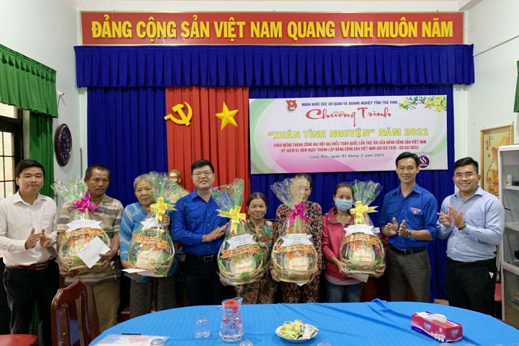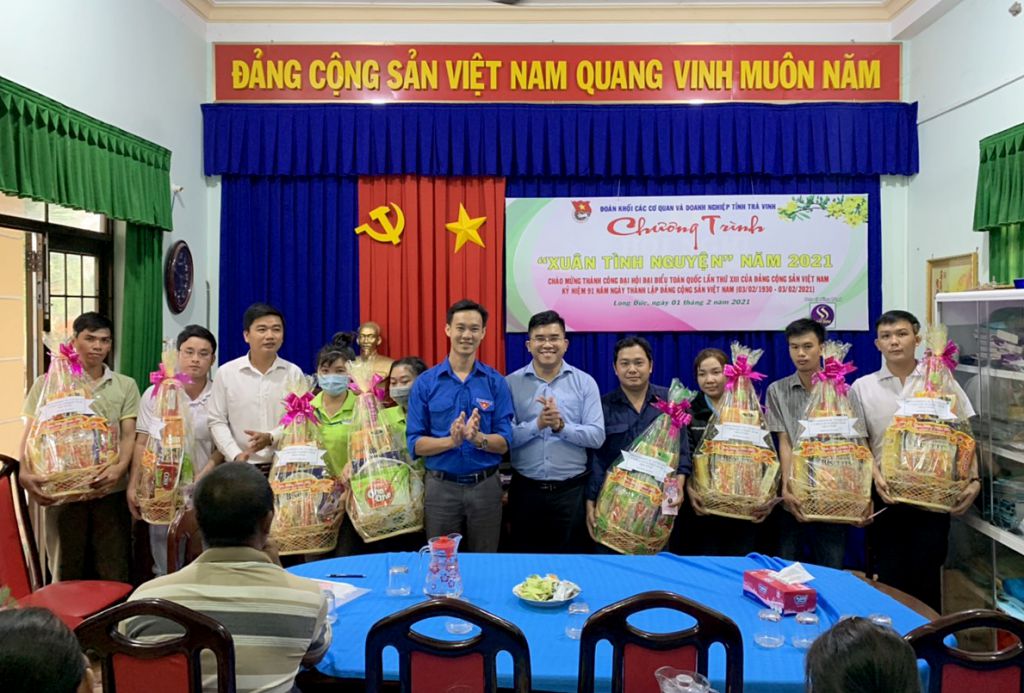 Ngày 01/02/2021, Đoàn khối các cơ quan và doanh nghiệp tỉnh Trà Vinh tổ chức đoàn đến thăm, tặng quà cho thanh niên, công nhân có hoàn cảnh khó khăn, ngoài tỉnh đang làm việc tại khu công nghiệp Long Đức (thuộc xã Long Đức, TP. Trà Vinh) do không có điều kiện về quê đón xuân Tân Sửu năm 2021.