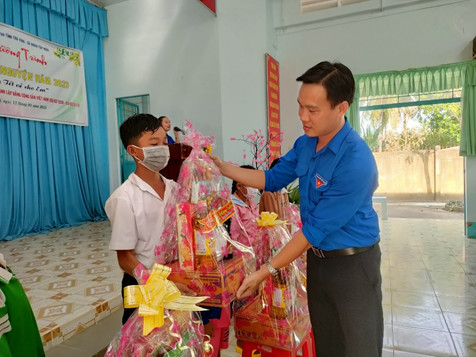Đồng chí Nguyễn Trọng Nhân, Bí Thư Đoàn khối trao quà Tết cho các em học sinh