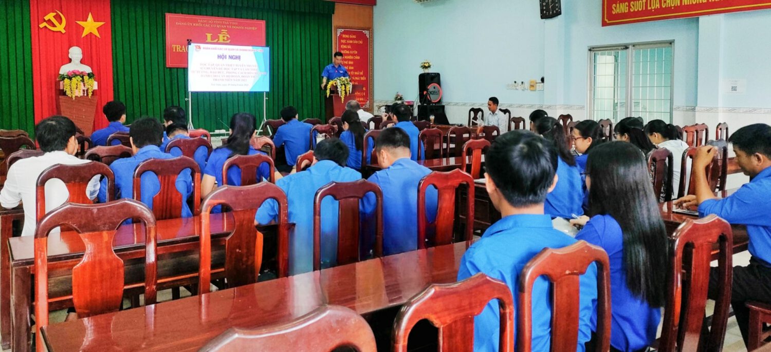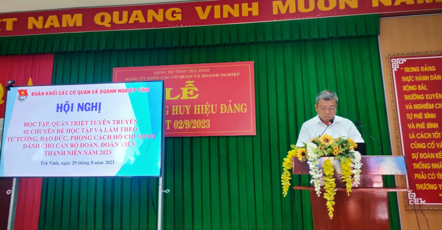 Sáng ngày 29/8/2023, tại Hội trường Đảng ủy khối các cơ quan và doanh nghiệp tỉnh, Ban Thường Đoàn khối tổ chức Hội nghị học tập, quán triệt và triển khai hai chuyên đề học tập và làm theo tư tưởng, đạo đức phong cách Hồ Chí Minh cho các bộ đoàn, đoàn viên, thanh niên trong khối. Tham dự hội nghị có Nhà giáo ưu tú, Giảng viên Cao cấp, Tiến sỹ Lâm Ngọc Rạng – Nguyên Phó Hiệu Trưởng Trường Chính trị tỉnh Trà Vinh; đồng chí Nguyễn Trọng Nhân – Đảng ủy viên, UVTV Tỉnh đoàn, Bí thư Đoàn khối.