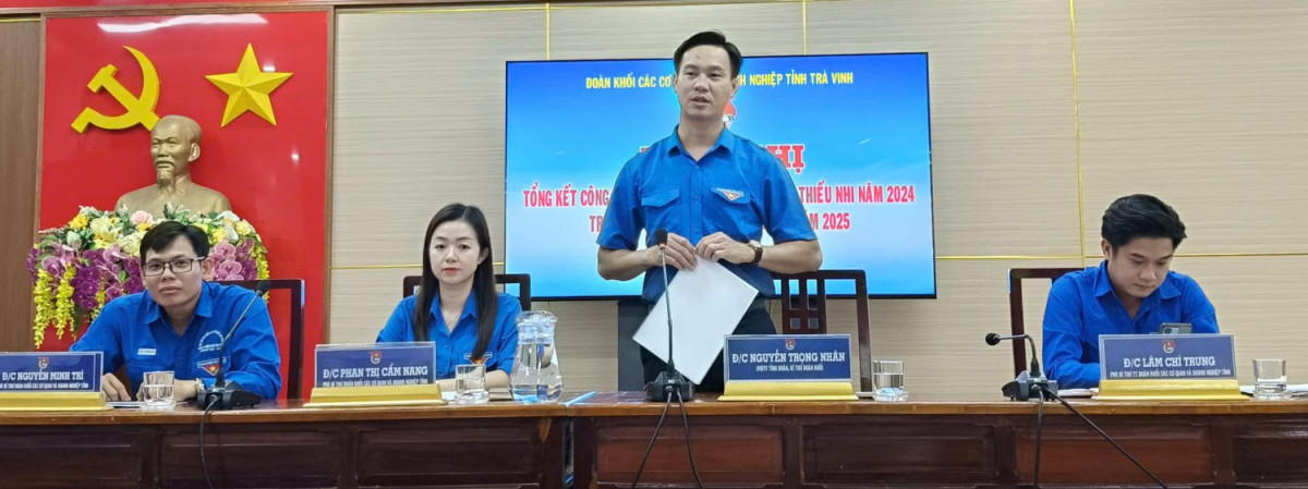 Ngày 10/01/2025, tại Hội trường Đảng ủy khối. Ban Chấp hành Đoàn khối các cơ quan và doanh nghiệp tỉnh Trà Vinh tổ chức Hội nghị tổng kết chương trình công tác đoàn và phong trào thanh thiếu nhi khối các cơ quan năm 2024, triển khai chương trình công tác Đoàn và phong trào thanh thiếu nhi năm 2025. Tham dự Hội nghị có các đồng chí: Lữ Công Tạo – Phó Bí thư Đảng ủy khối các cơ quan và doanh nghiệp tỉnh; Nguyễn Trọng Nhân – Đảng ủy viên, UVBTV Tỉnh đoàn, Bí thư Đoàn khối cơ quan và doanh nghiệp tỉnh; các đồng chí là ủy viên Ban Chấp hành; Bí thư, Phó Bí thư các cơ sở Đoàn trực thuộc Đoàn khối, phóng viên Báo Trà Vinh; Đài Phát Thanh – Truyền hình Trà Vinh cùng tham dự.