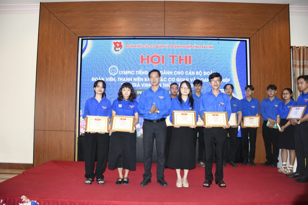 Đồng chí Lâm Chí Trung – UVBCH Tỉnh đoàn, Phó Bí thư thường trực Đoàn khối trao giải Ba cho các thí sinh