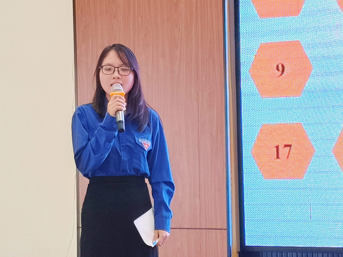 Thí sinh Nguyễn Trần Phương Uyên – Chi đoàn Sở nông nghiệp và phát triển nông thôn trình bày phần dự thi tại bảng A