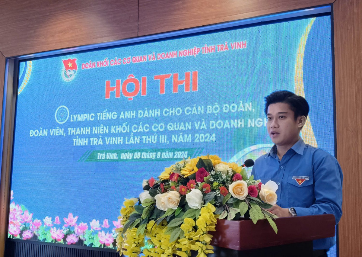 Ngày 08/9/2024, tại Hội trường Khách sạn Cửu Long. Ban Thường vụ Đoàn khối tổ chức Hội thi “Olympic Tiếng anh” dành cho cán bộ đoàn, đoàn viên, thanh niên lần thứ III, năm 2024. Tham dự hội thi có đồng chí Nguyễn Trọng Nhân – Đảng ủy viên, UVTV Tỉnh đoàn, Bí thư Đoàn khối; đồng chí Lâm Chí Trung – UVBCH Tỉnh đoàn, Phó Bí thư Thường trực Đoàn khối; các đồng chí đại diện các cơ sở đoàn trực thuộc và 20 thí sinh tham gia xuất sắc tại vòng sơ khảo.